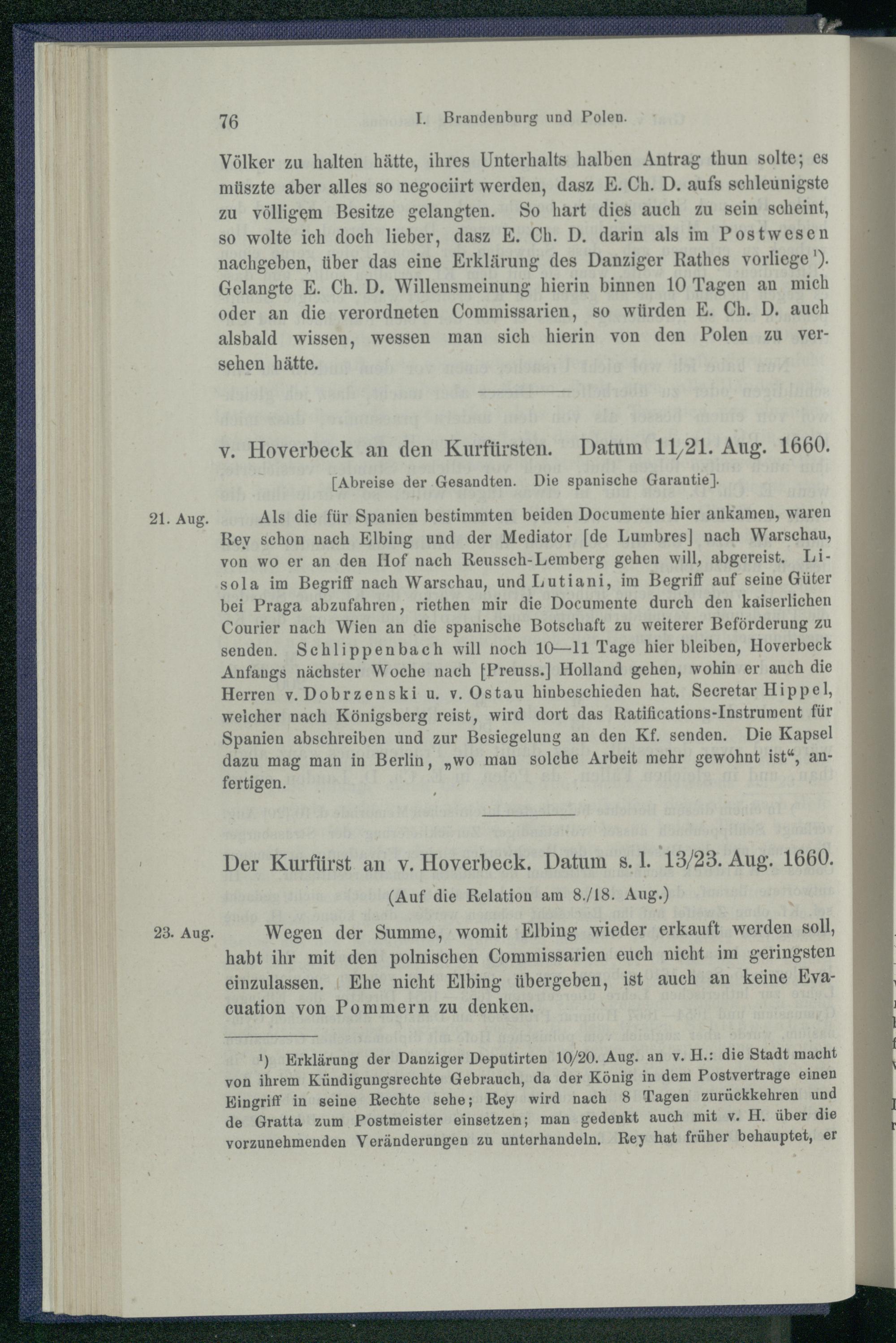 I. Brandenburg und Polen nach dem Friedensschluss von Oliva. 1660 - 1663.