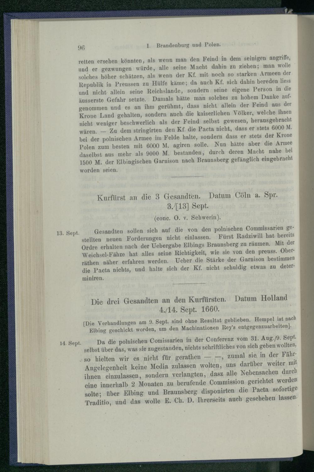 I. Brandenburg und Polen nach dem Friedensschluss von Oliva. 1660 - 1663.