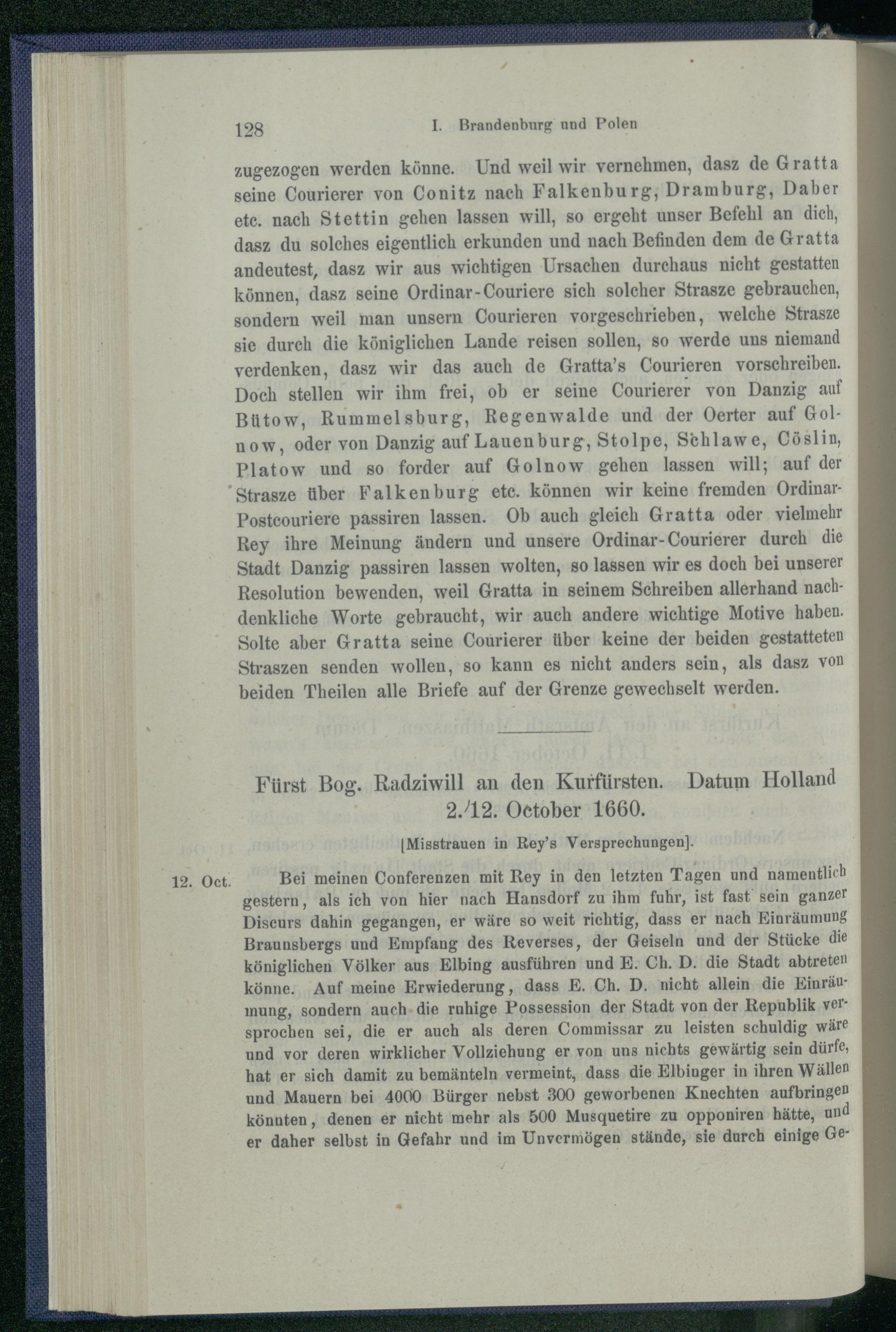 I. Brandenburg und Polen nach dem Friedensschluss von Oliva. 1660 - 1663.