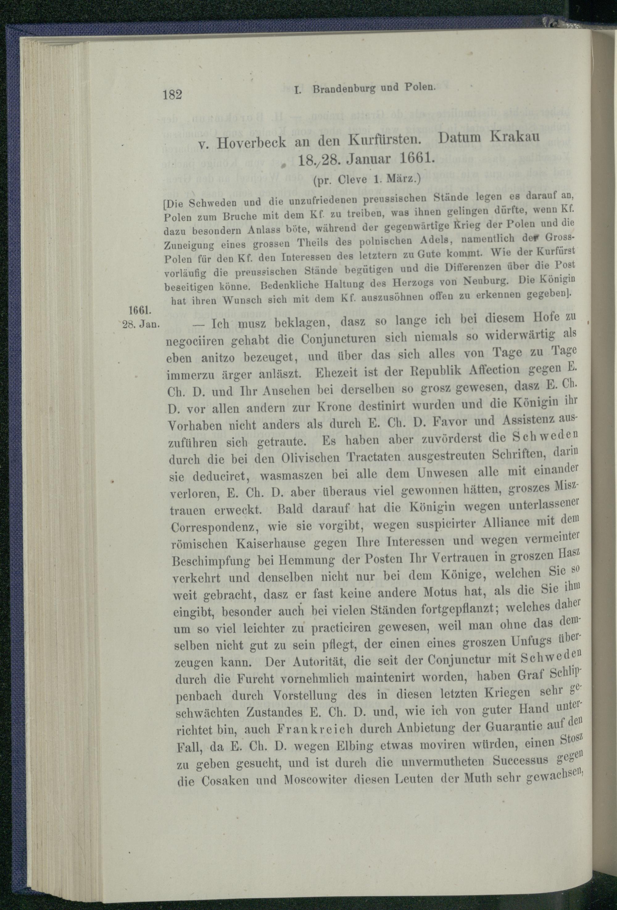 I. Brandenburg und Polen nach dem Friedensschluss von Oliva. 1660 - 1663.