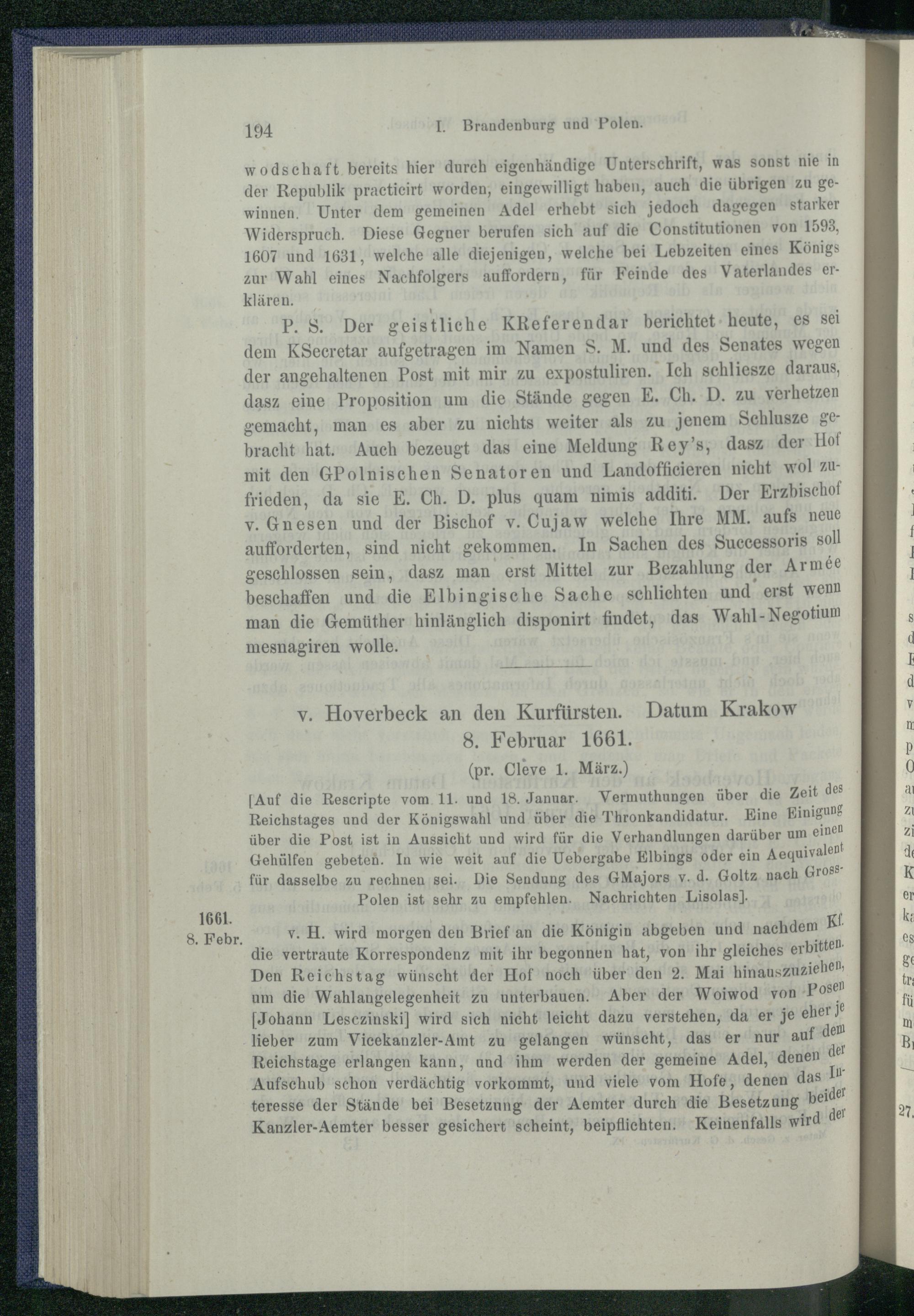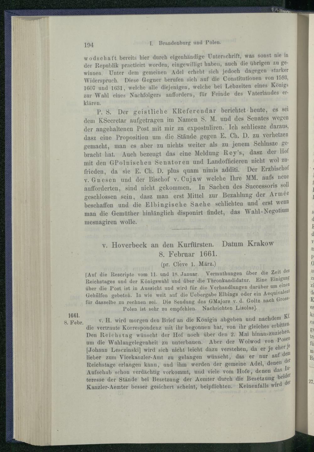 I. Brandenburg und Polen nach dem Friedensschluss von Oliva. 1660 - 1663.
