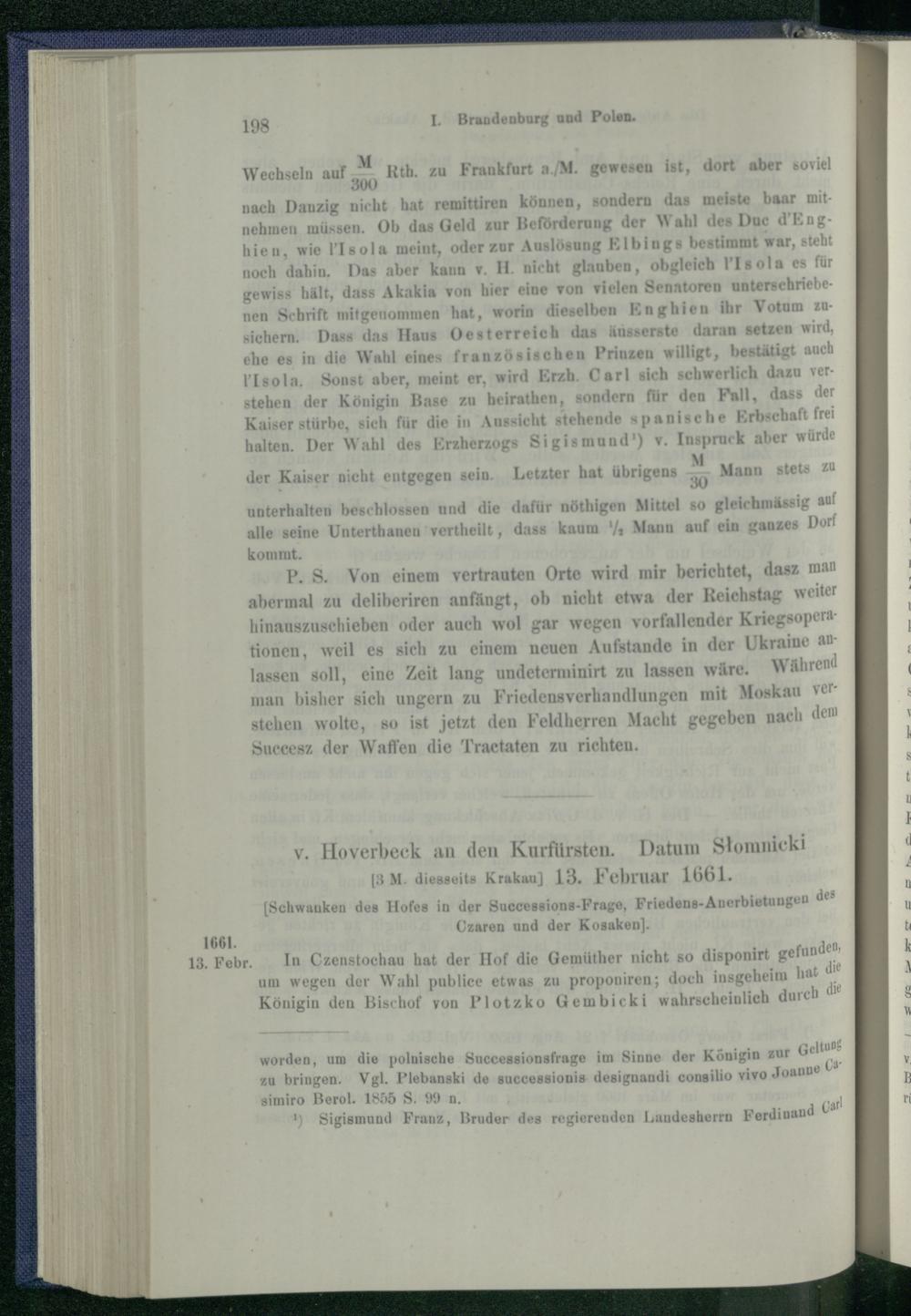 I. Brandenburg und Polen nach dem Friedensschluss von Oliva. 1660 - 1663.