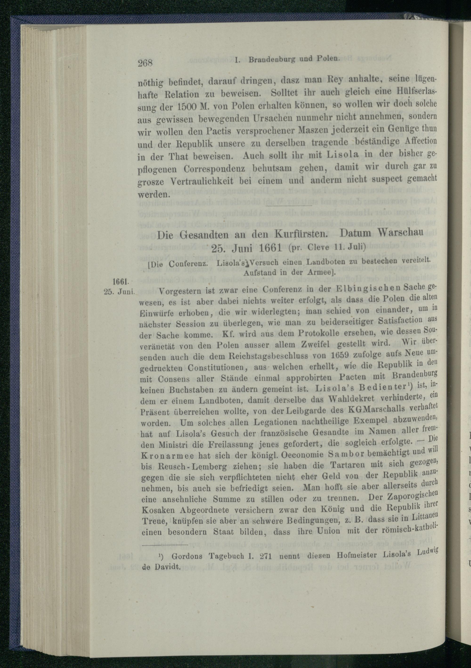 I. Brandenburg und Polen nach dem Friedensschluss von Oliva. 1660 - 1663.