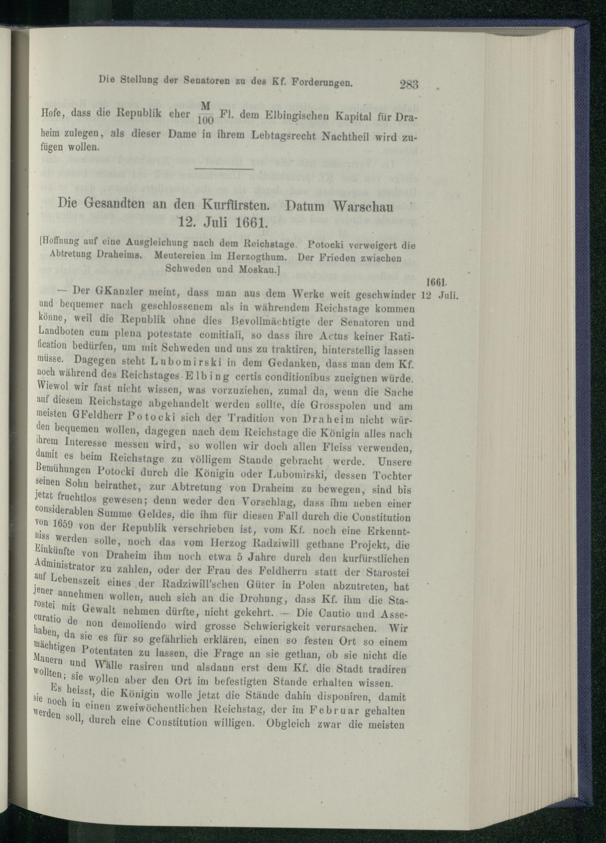 5. Die Absendung Joh. v. Hoverbeck's und Joh. Ulrich v. Dobrzenski's an den Reichstag...