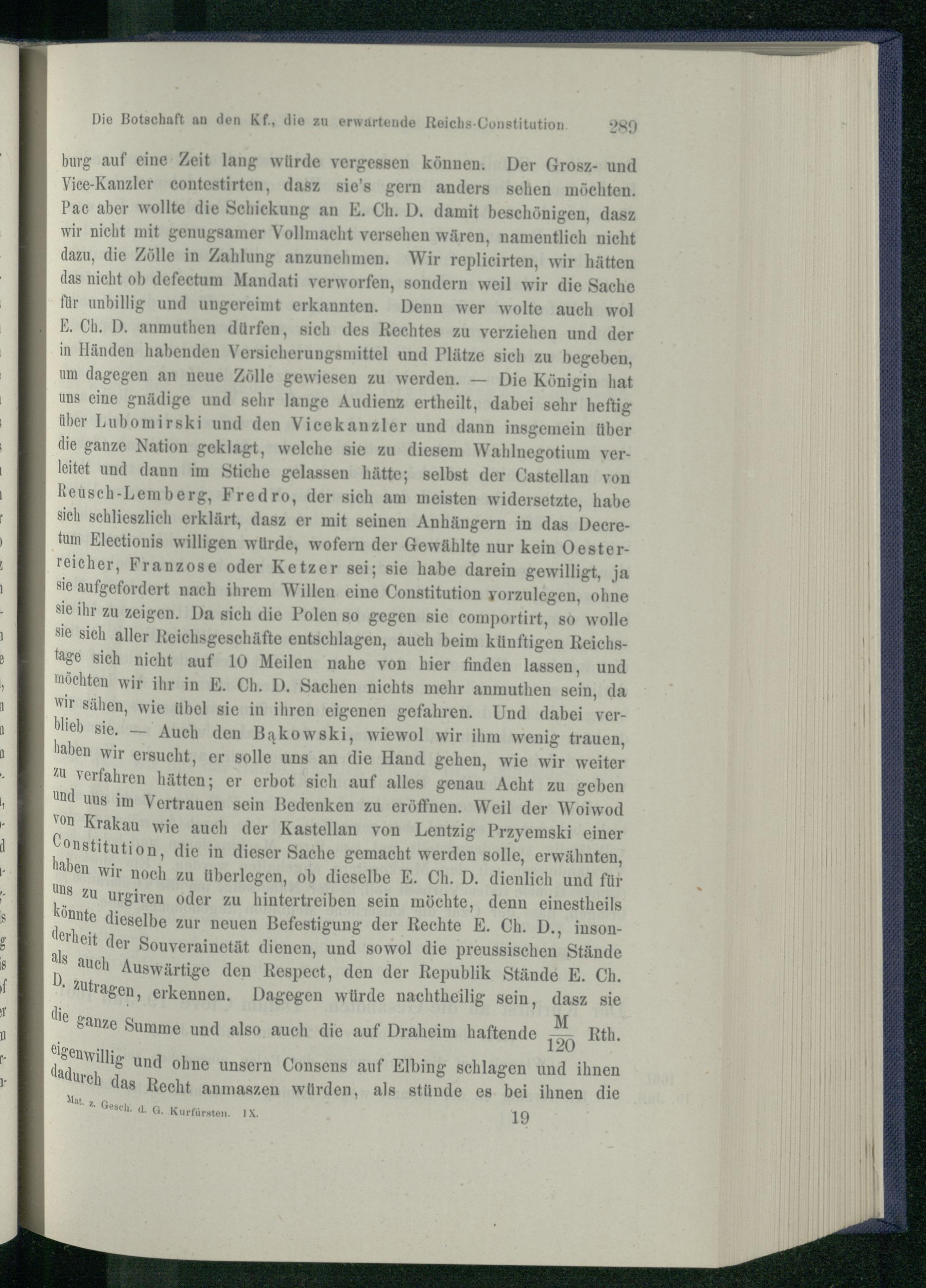 5. Die Absendung Joh. v. Hoverbeck's und Joh. Ulrich v. Dobrzenski's an den Reichstag...