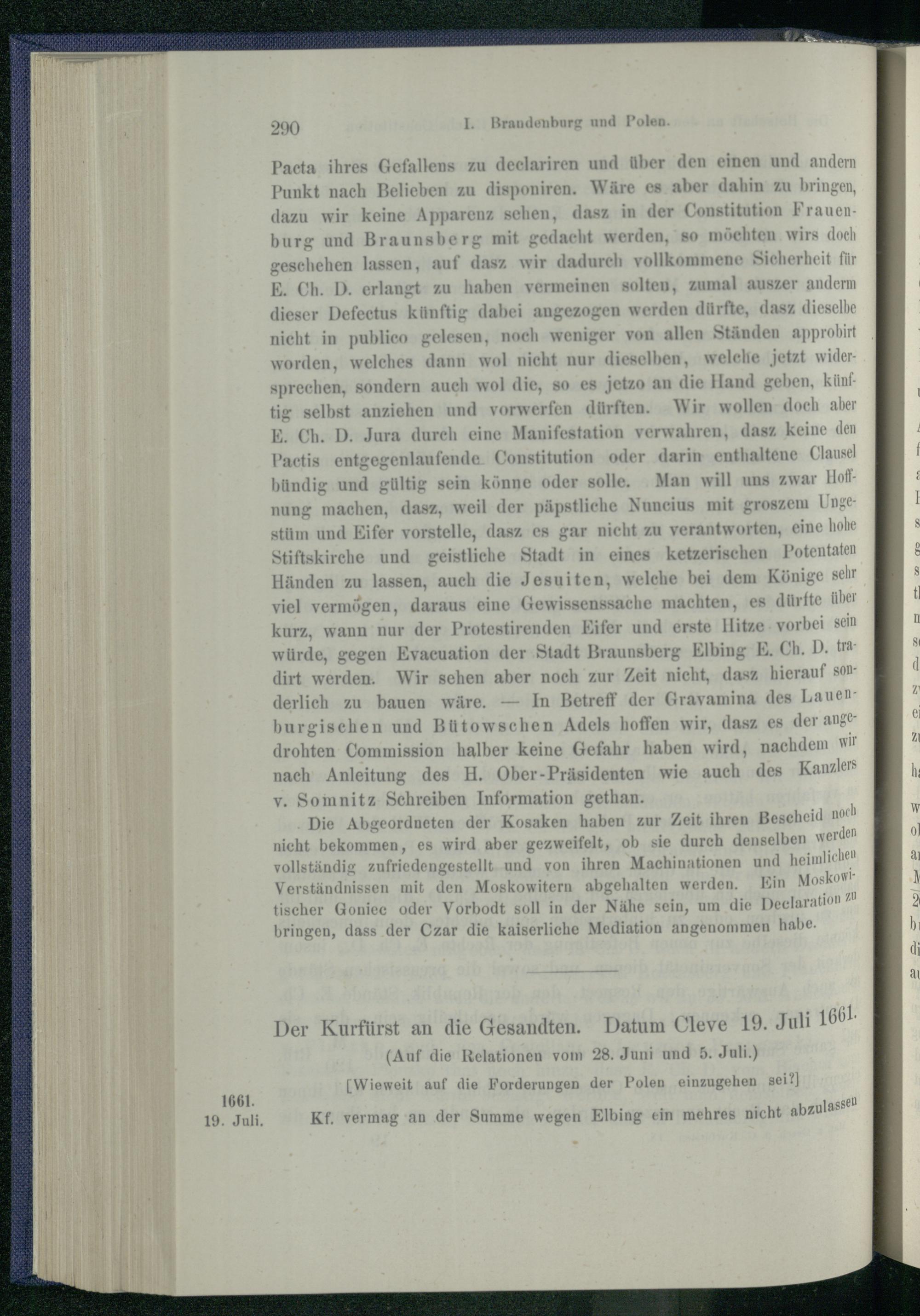 I. Brandenburg und Polen nach dem Friedensschluss von Oliva. 1660 - 1663.