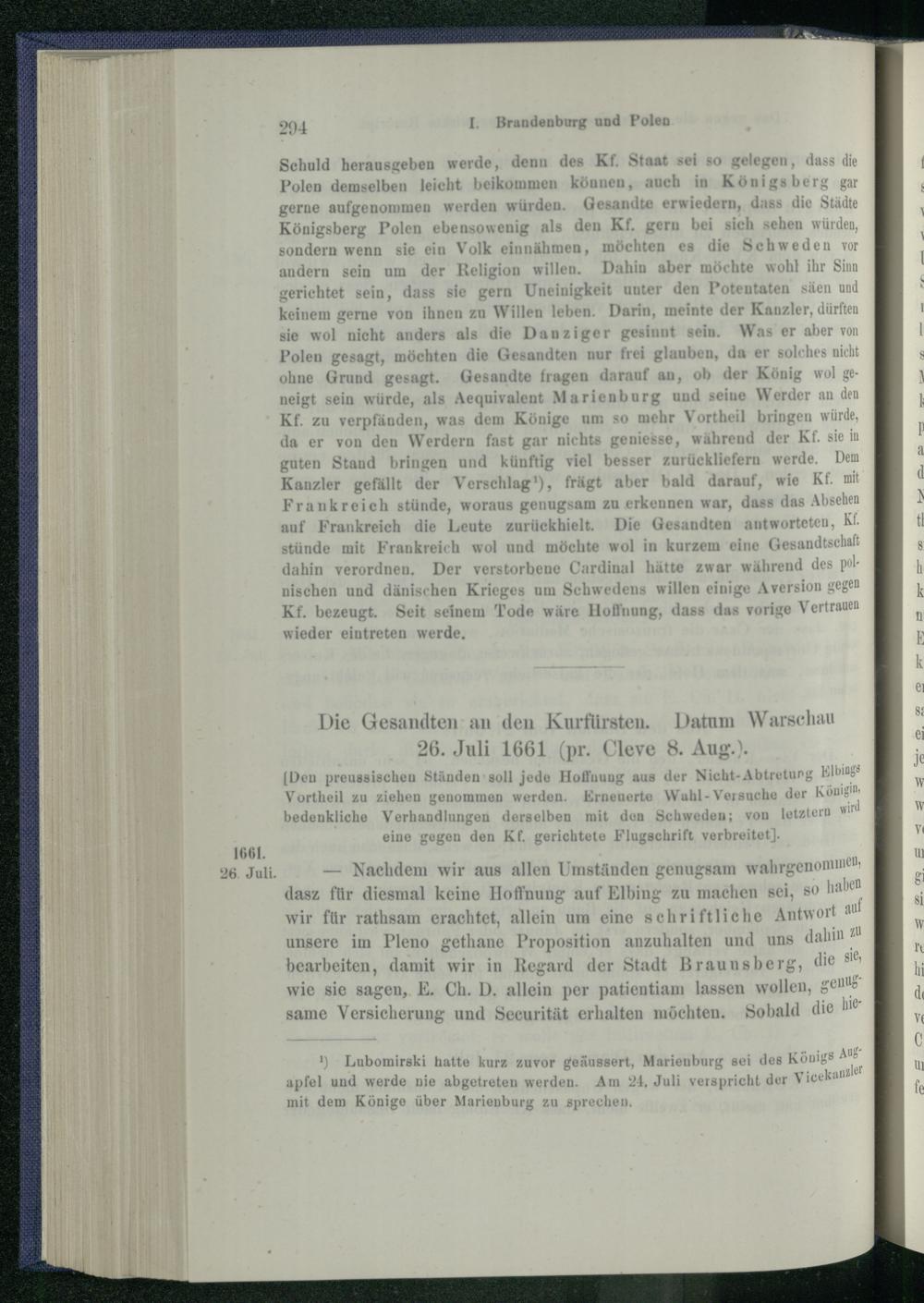 I. Brandenburg und Polen nach dem Friedensschluss von Oliva. 1660 - 1663.