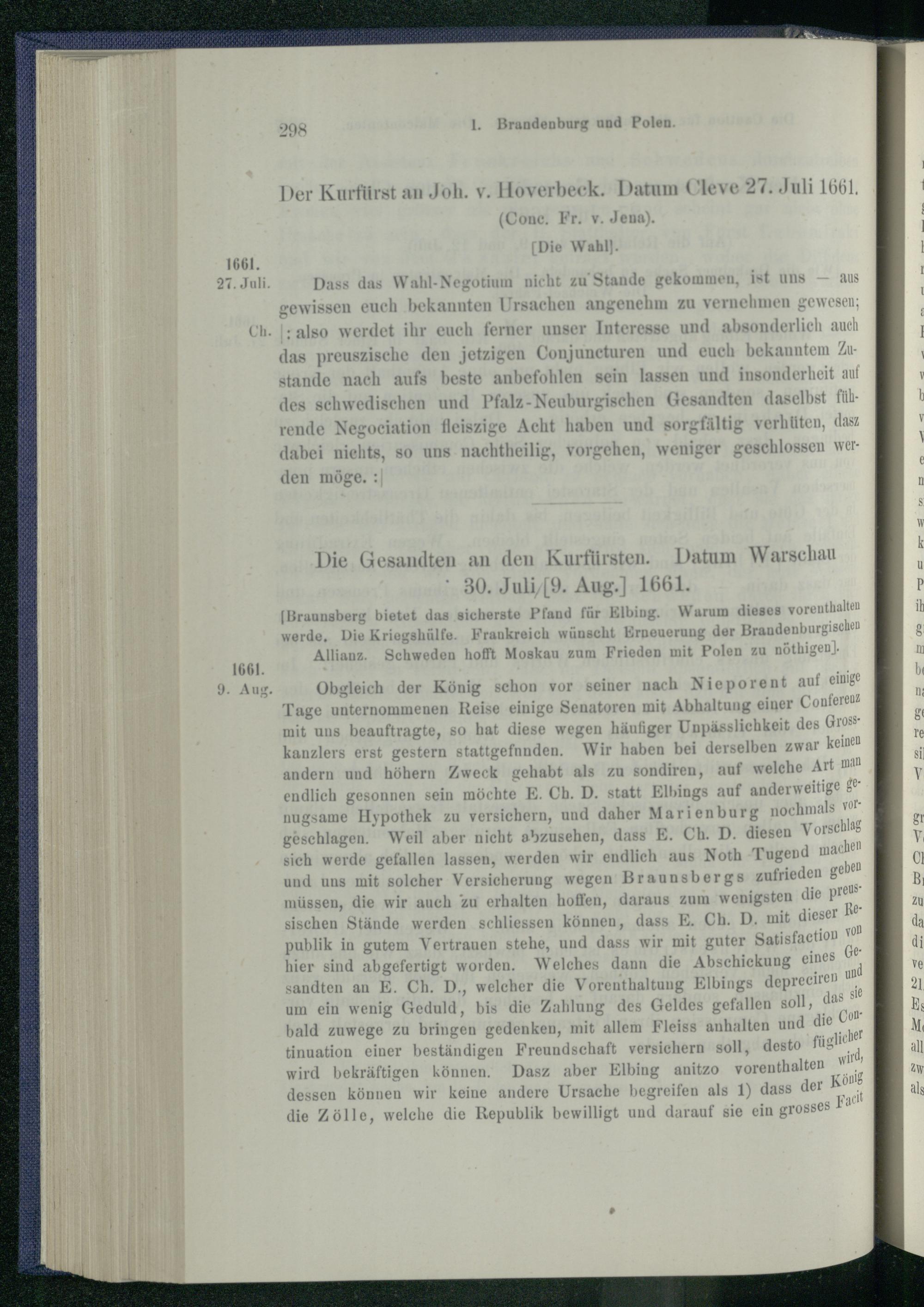 I. Brandenburg und Polen nach dem Friedensschluss von Oliva. 1660 - 1663.