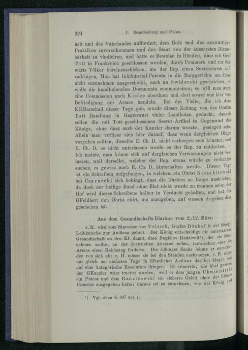 6. Die Absendung Johann v. Hoverbeck's zum ausserordentlichen Reichstage in Wars...
