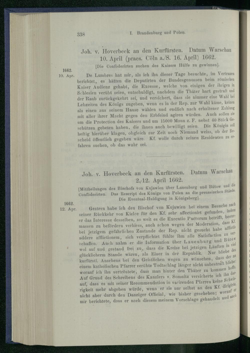 6. Die Absendung Johann v. Hoverbeck's zum ausserordentlichen Reichstage in Wars...
