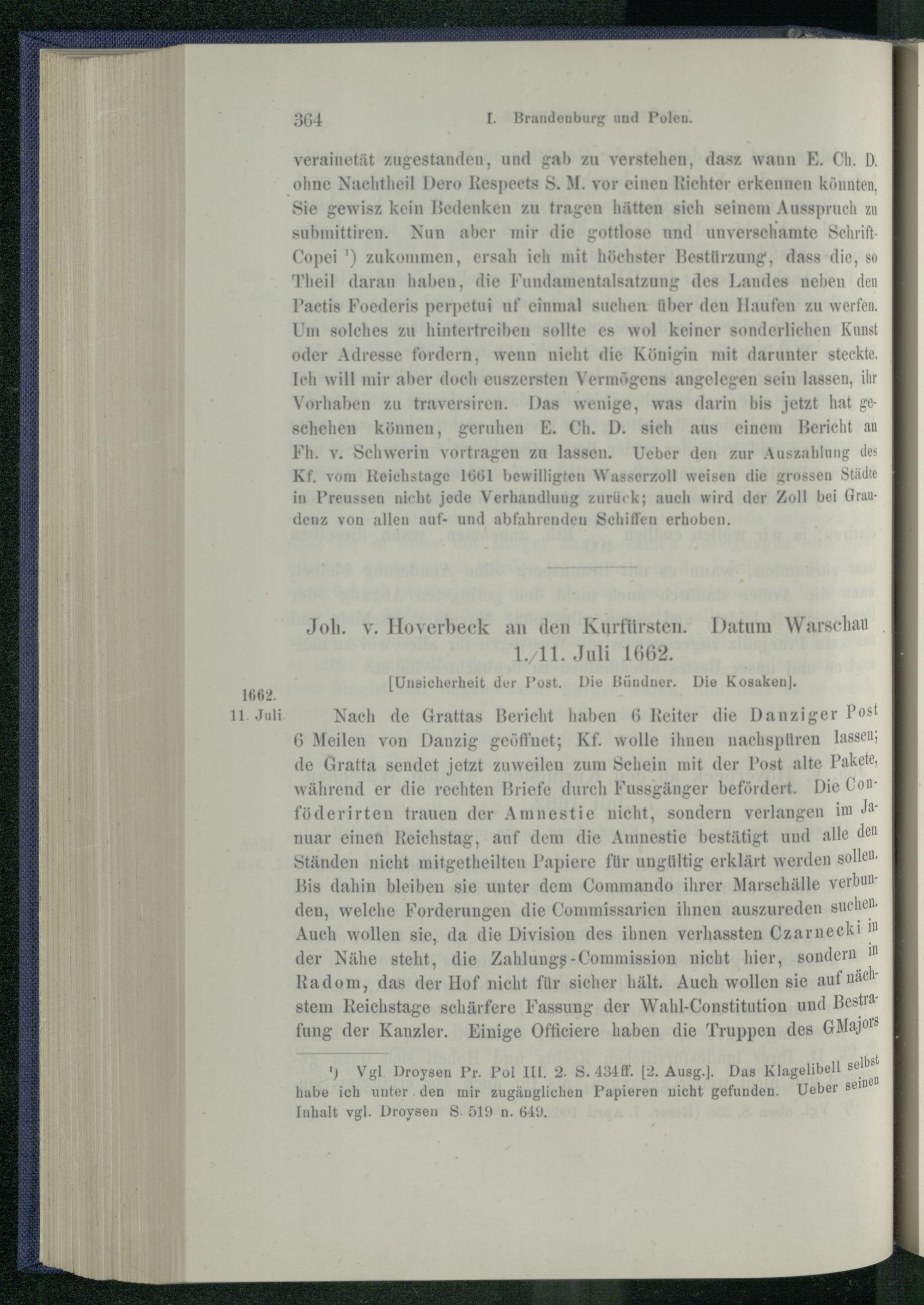 I. Brandenburg und Polen nach dem Friedensschluss von Oliva. 1660 - 1663.