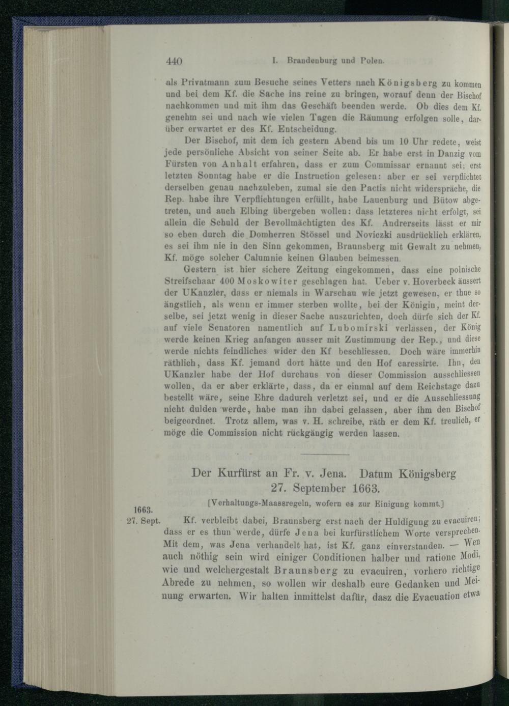 I. Brandenburg und Polen nach dem Friedensschluss von Oliva. 1660 - 1663.