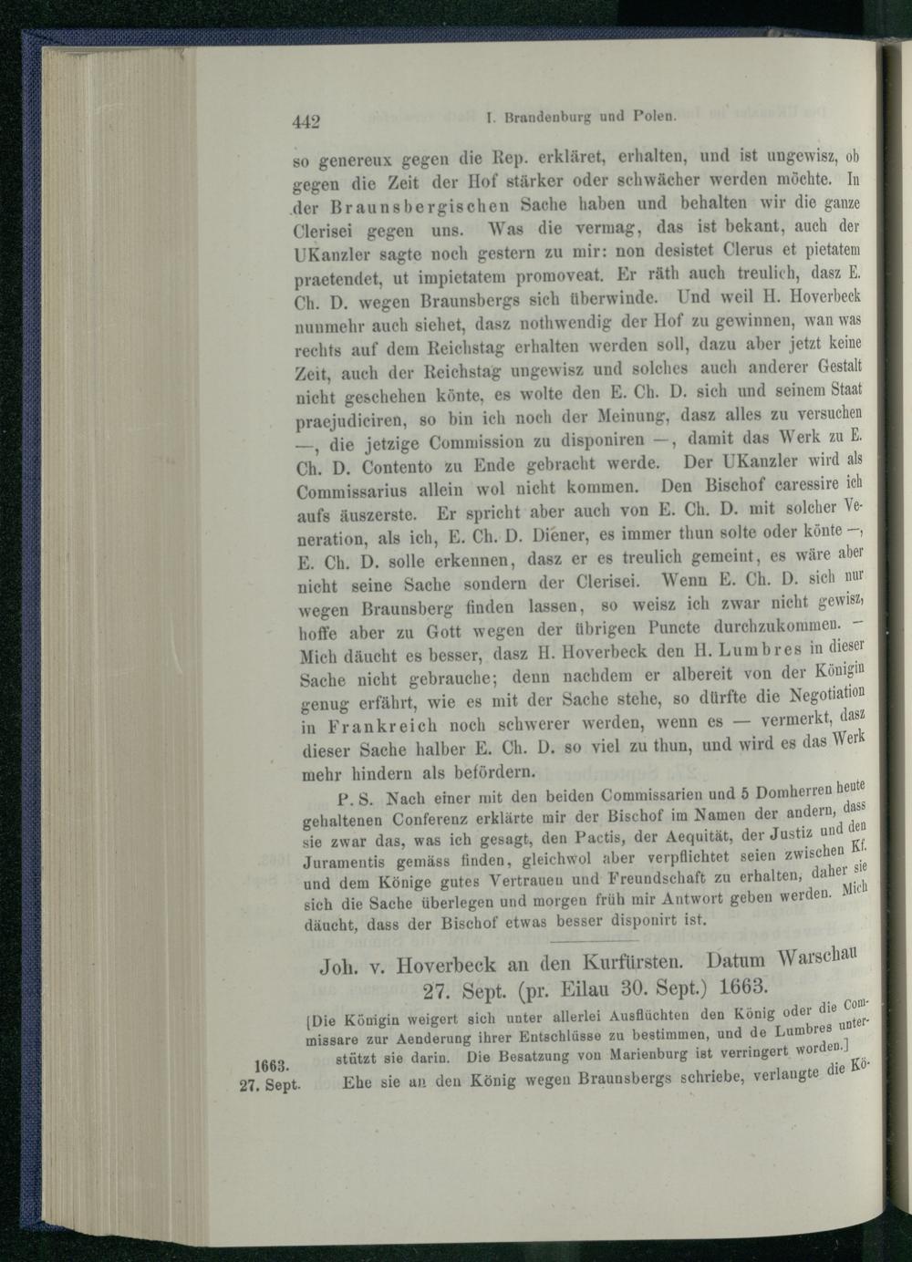 I. Brandenburg und Polen nach dem Friedensschluss von Oliva. 1660 - 1663.