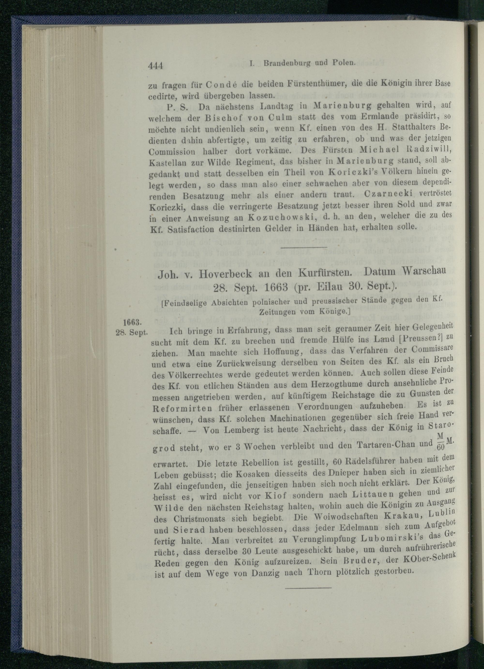 I. Brandenburg und Polen nach dem Friedensschluss von Oliva. 1660 - 1663.
