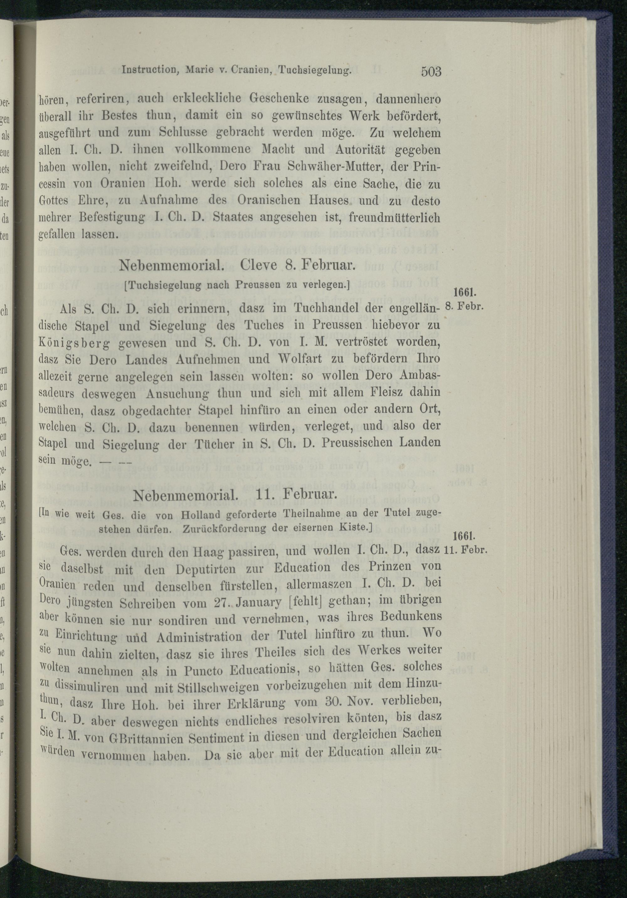 II. Die Oranische Vormundschaft und die englische Allianz. 1660 - 1661.