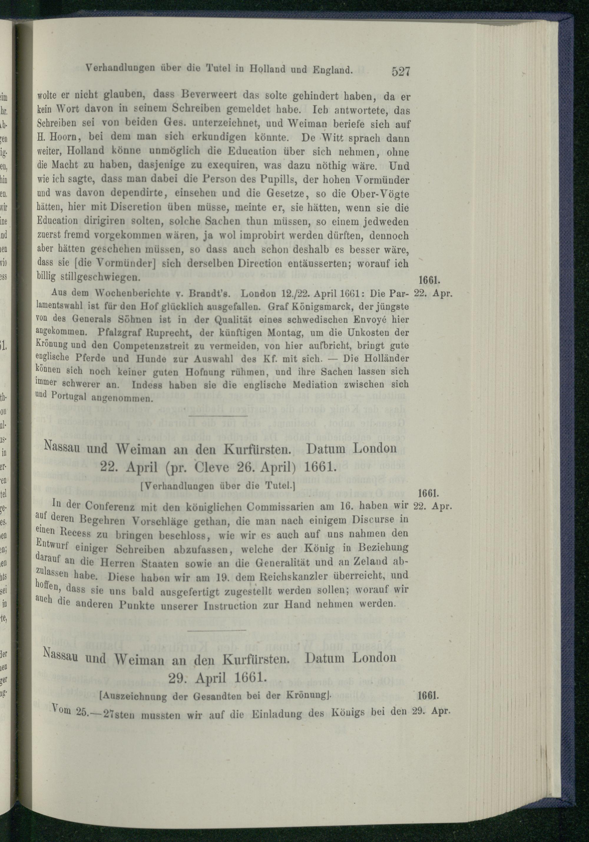 II. Die Oranische Vormundschaft und die englische Allianz. 1660 - 1661.