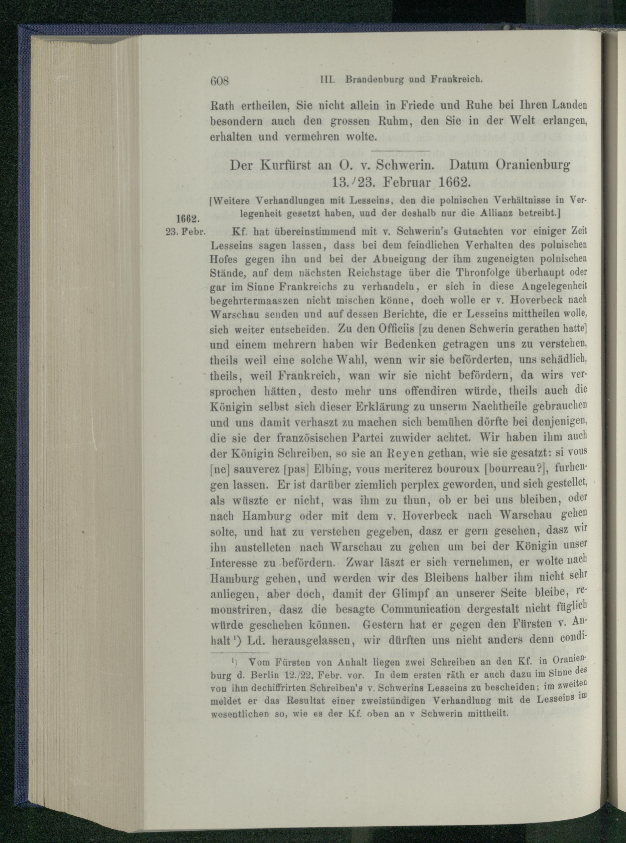 III. Brandenburg und Frankreich. 1660 - 1664.