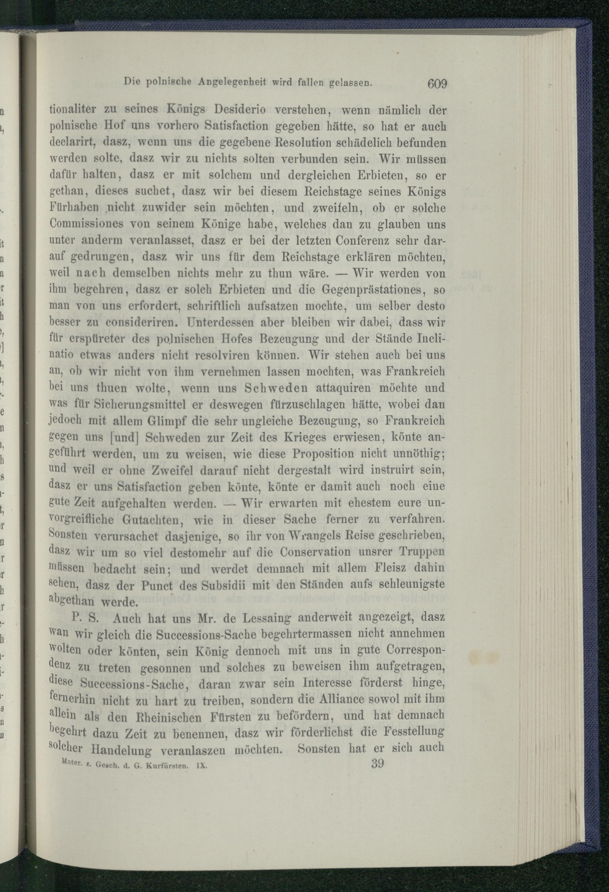 5. Verhandlungen des französischen Envoyé de Lesseins in Berlin. Januar - 26. April...