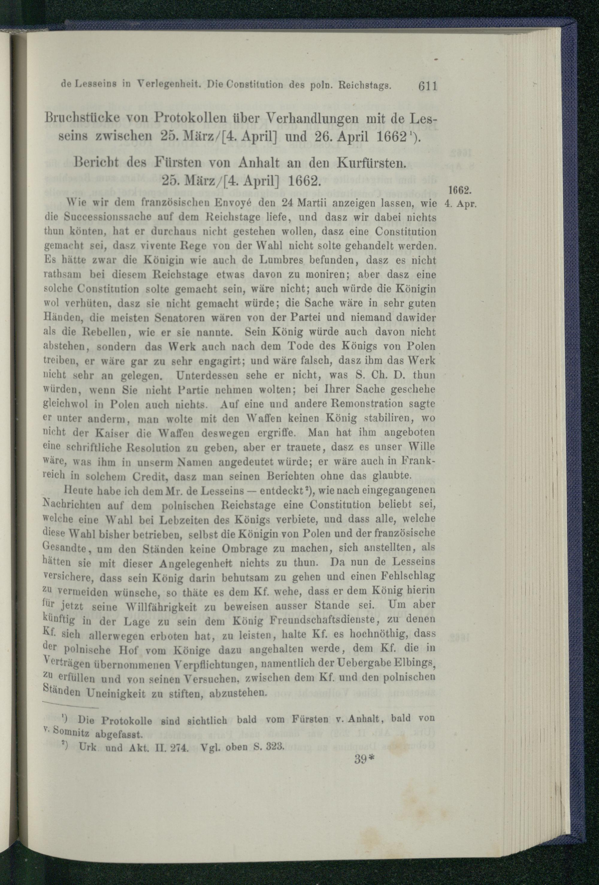 5. Verhandlungen des französischen Envoyé de Lesseins in Berlin. Januar - 26. April...