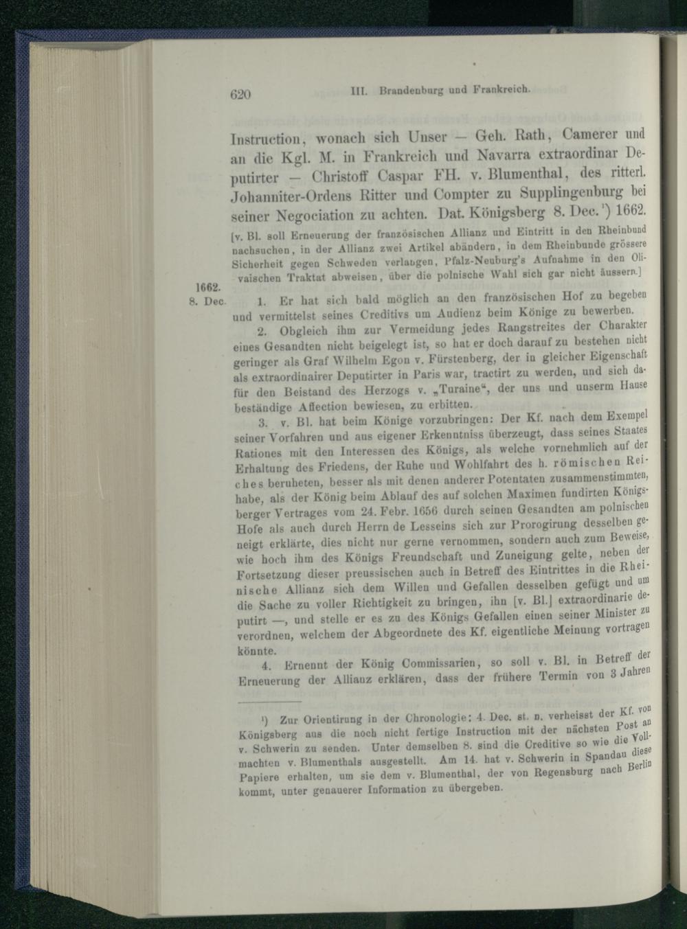 6. Die Gesandtschaft des Freiherrn Christoph Caspar v. Blumenthal nach Frankreich....