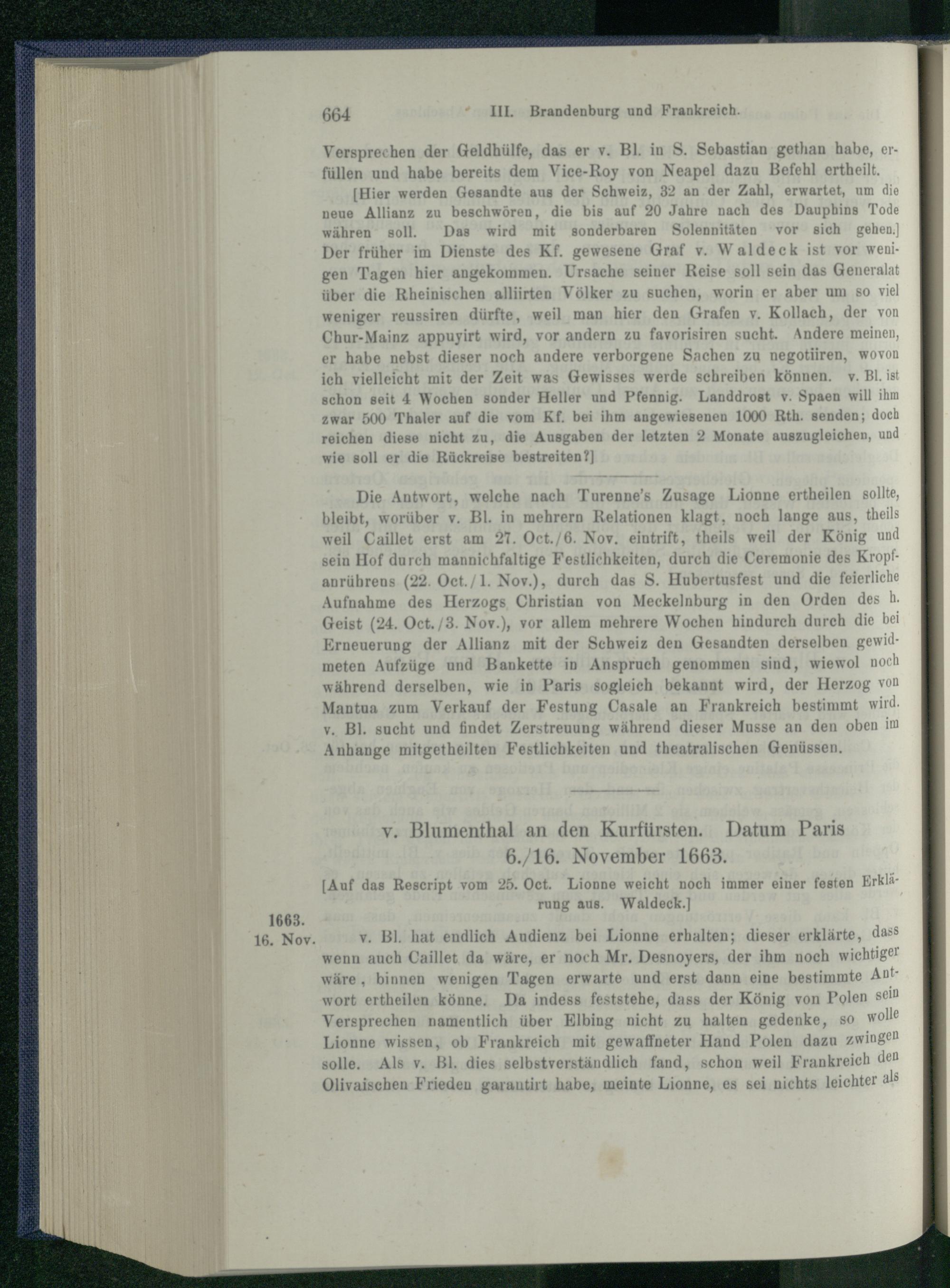 III. Brandenburg und Frankreich. 1660 - 1664.