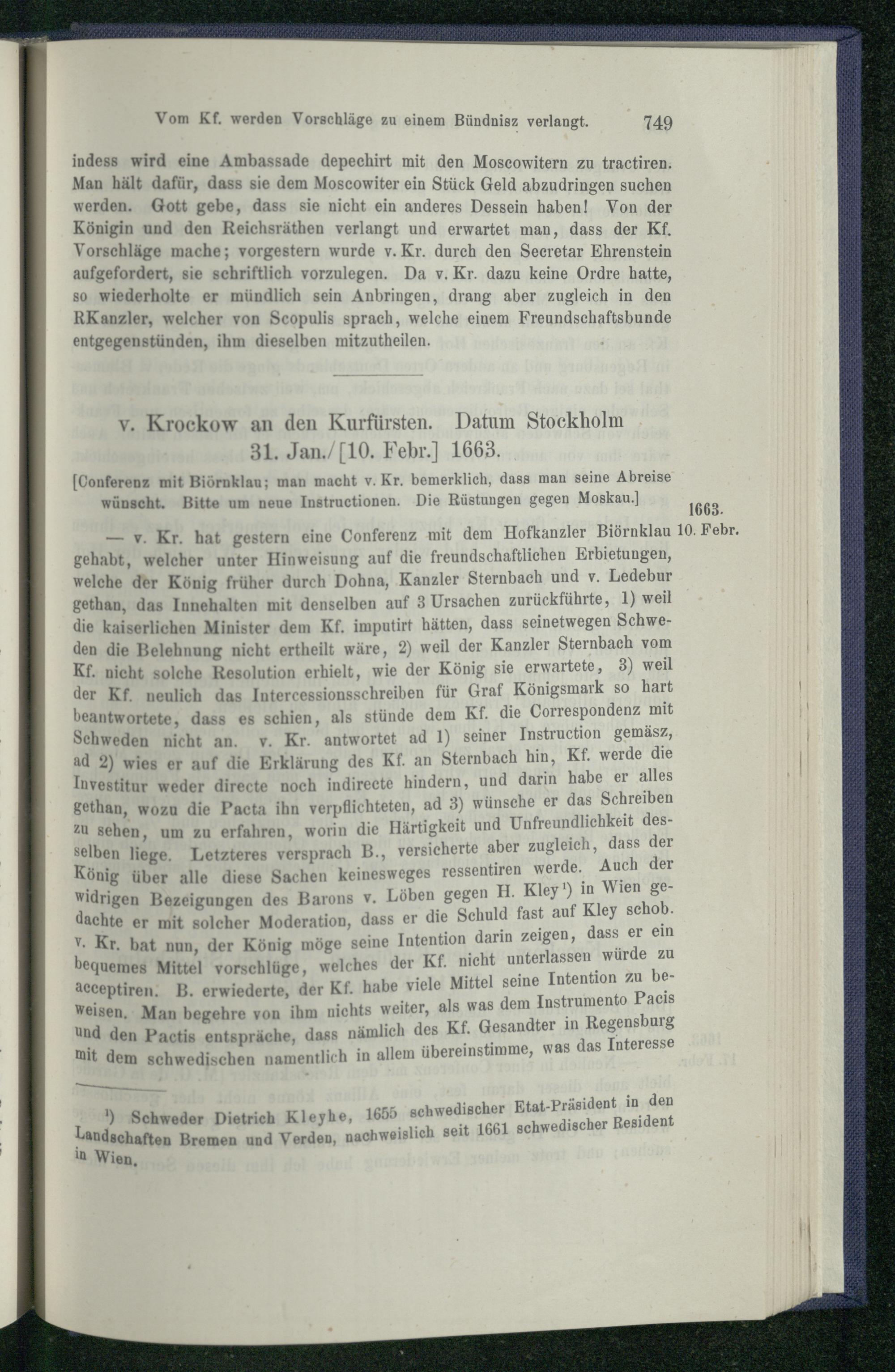 2. Die Verhandlungen Lorenz Georg's v. Krockow in Schweden. 1662 - 1666.