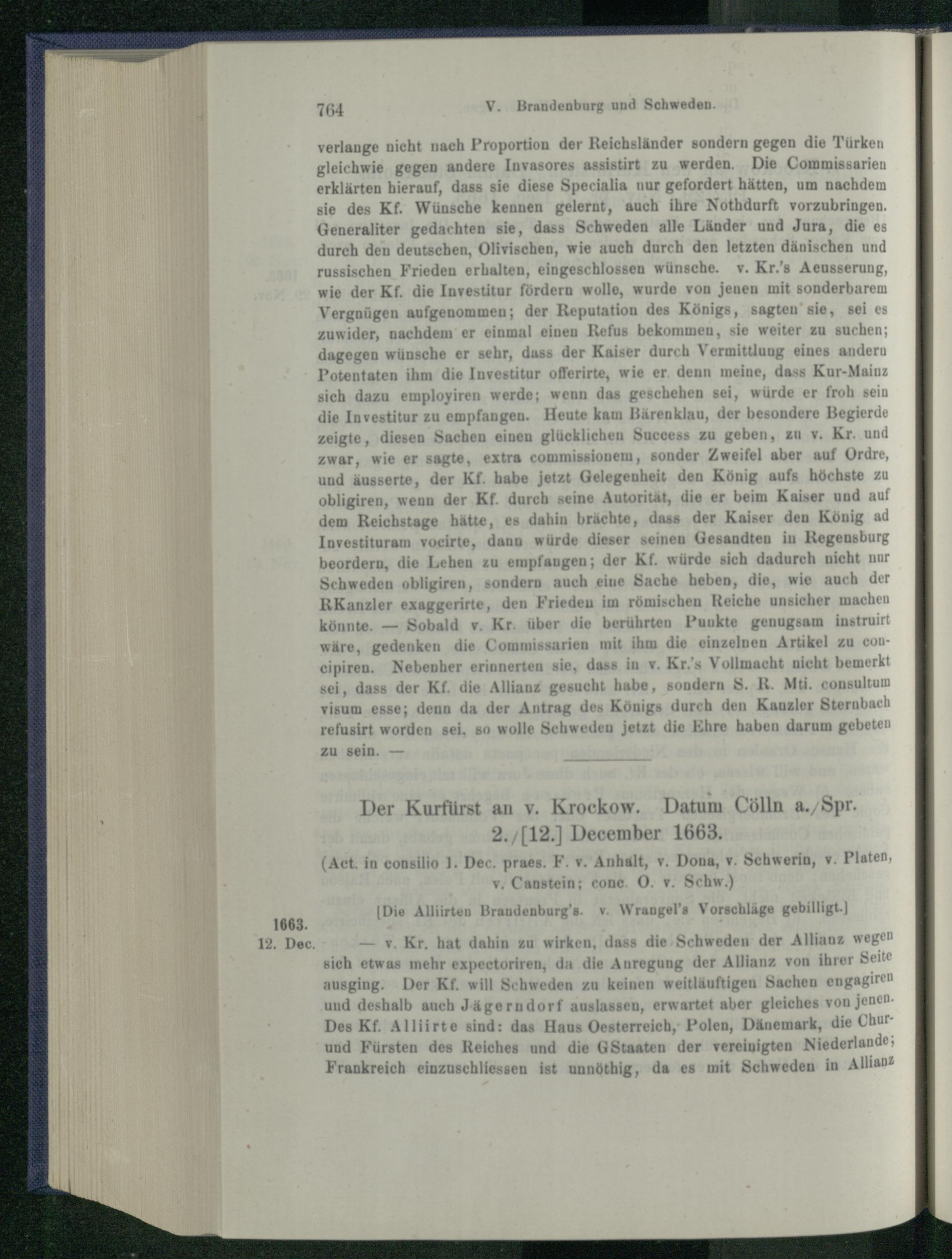 V. Brandenburg und Schweden. 1660 - 1666.