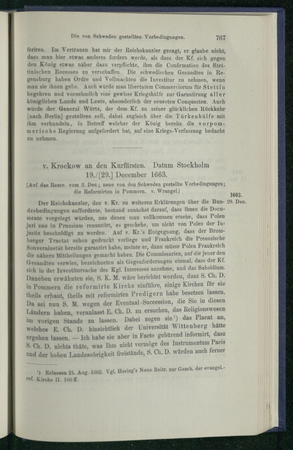 2. Die Verhandlungen Lorenz Georg's v. Krockow in Schweden. 1662 - 1666.