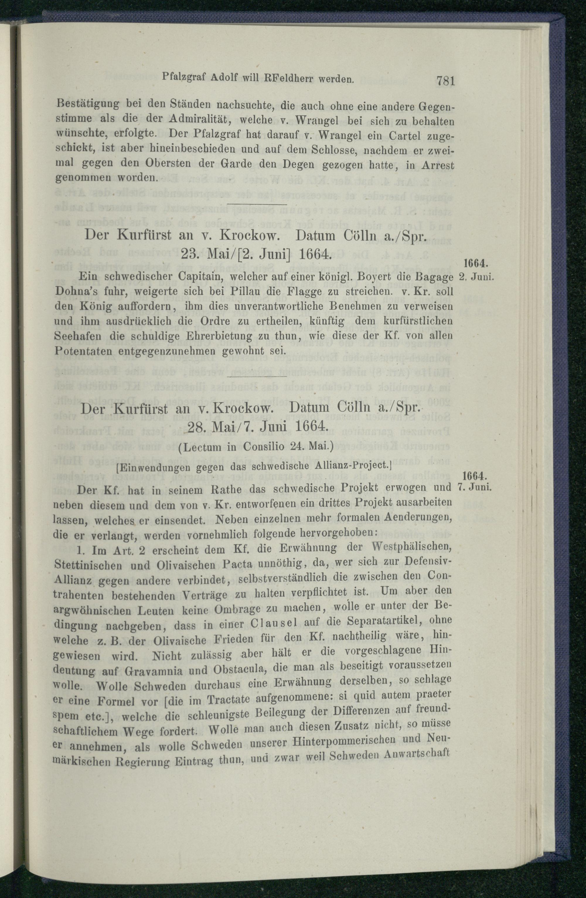 V. Brandenburg und Schweden. 1660 - 1666.