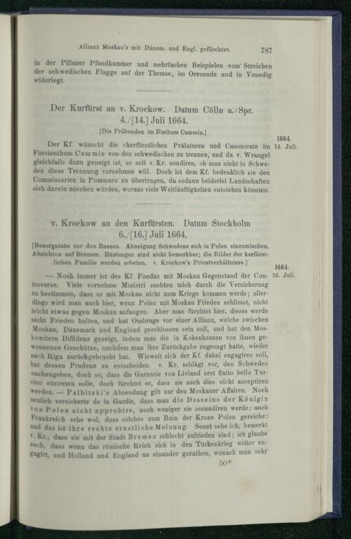 Urkunden und Actenstücke zur Geschichte des Kurfürsten Friedrich Wilhelm von Bra...