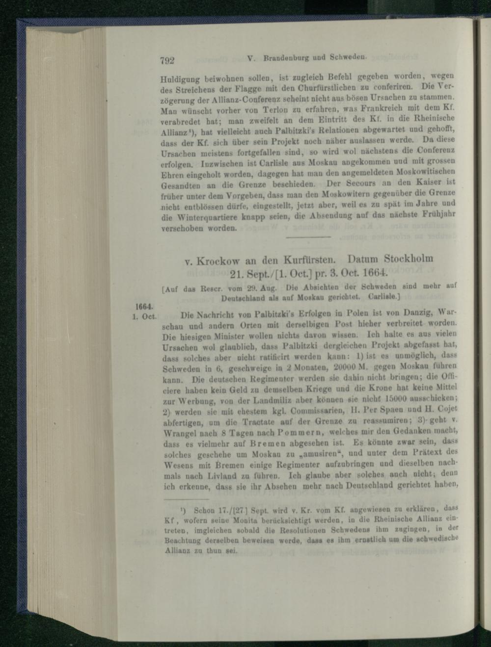 V. Brandenburg und Schweden. 1660 - 1666.