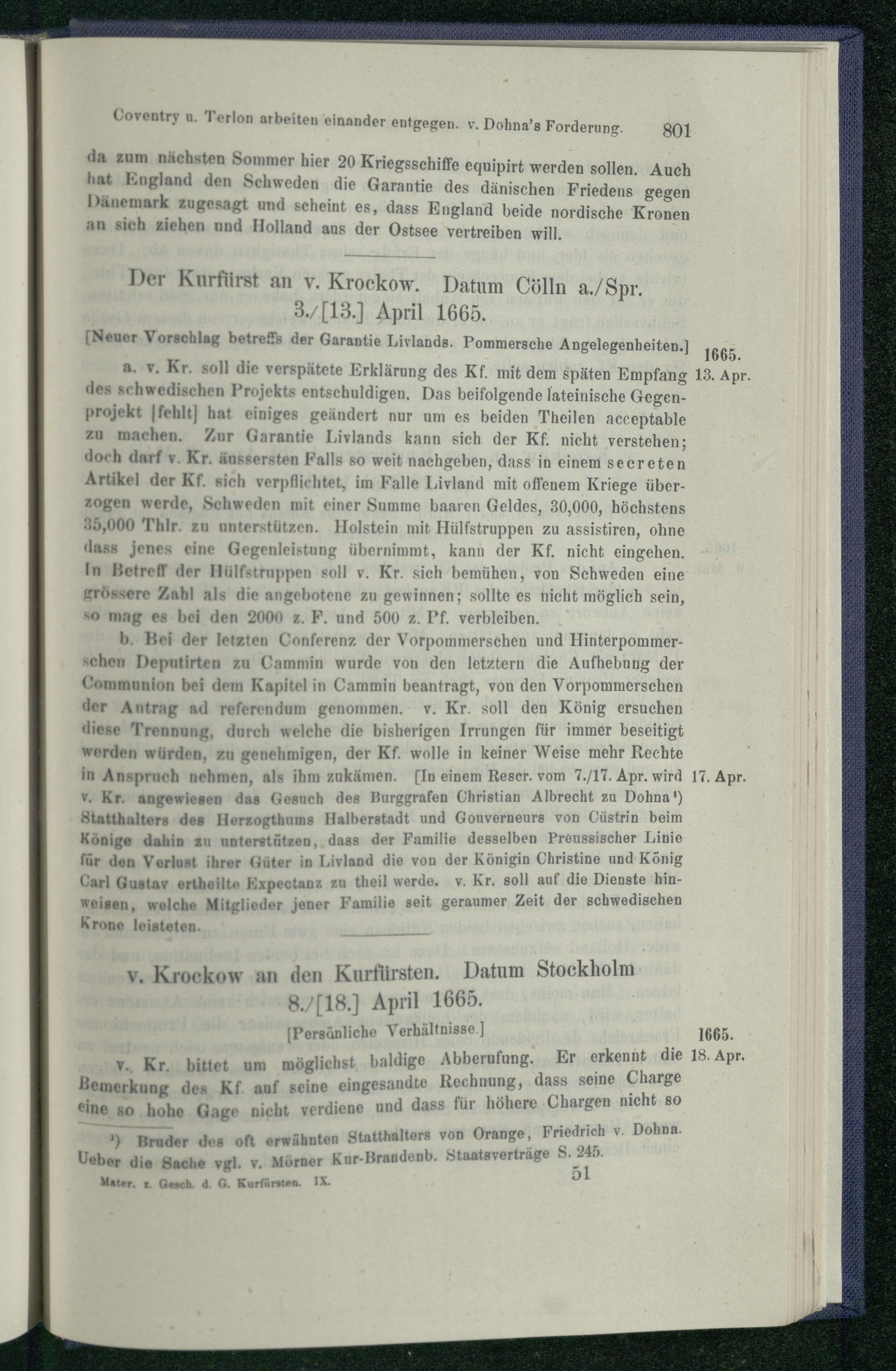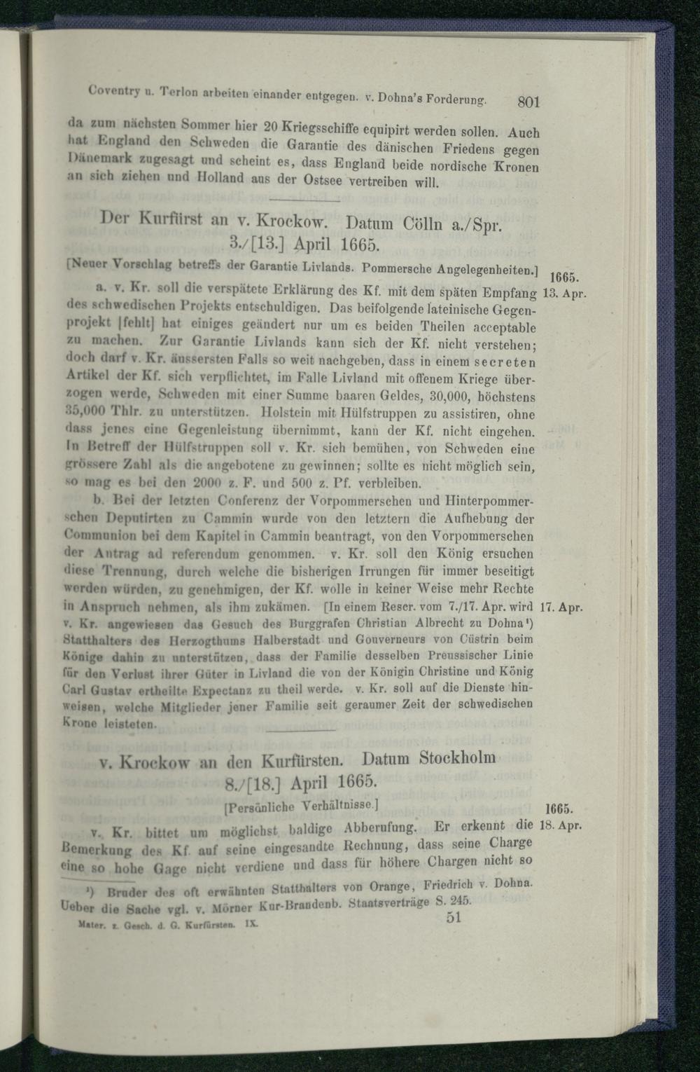 V. Brandenburg und Schweden. 1660 - 1666.