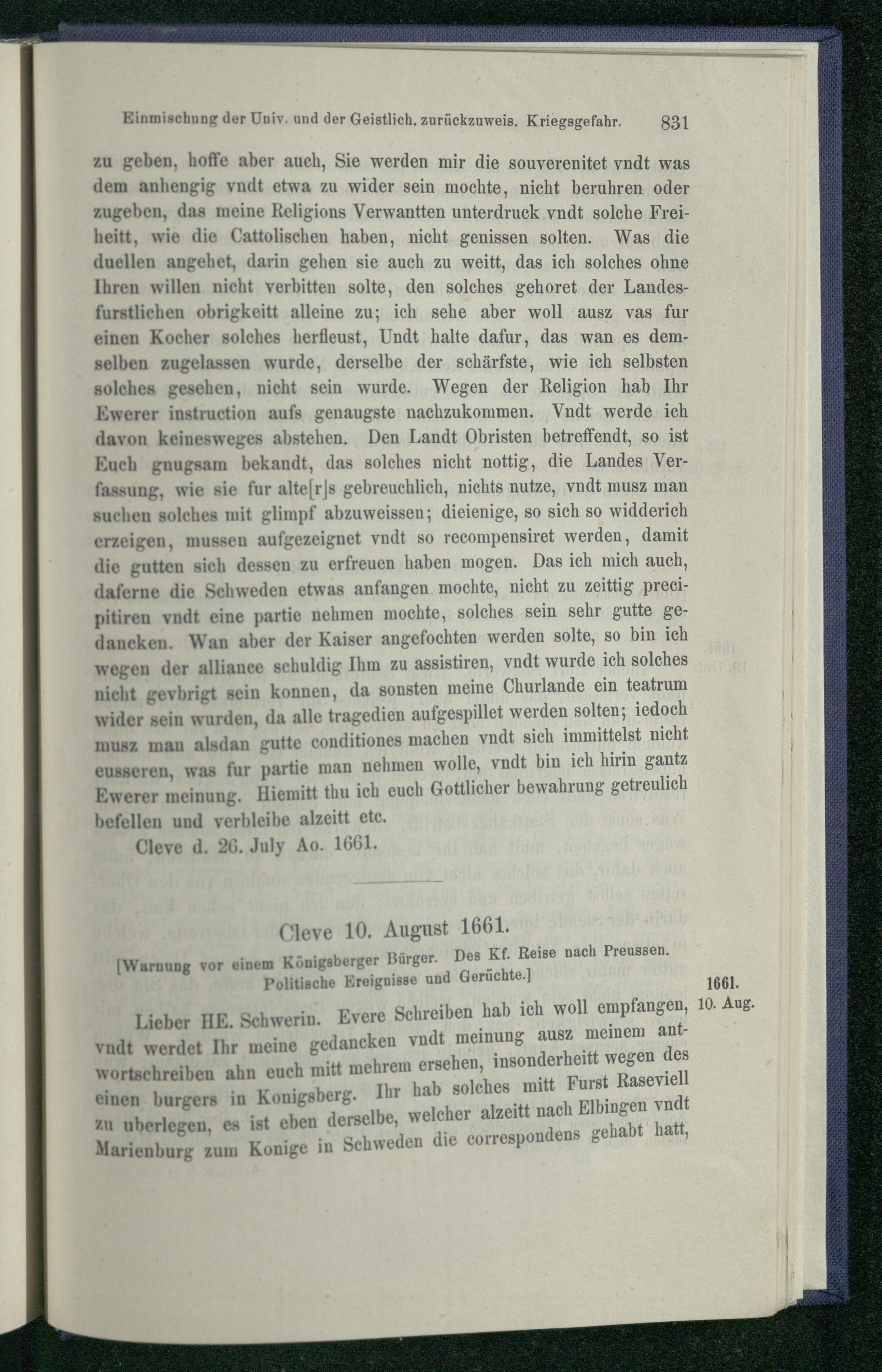 VI. Vertrauliche Briefe des Kurfürsten an Otto v. Schwerin 1661 - 1663.