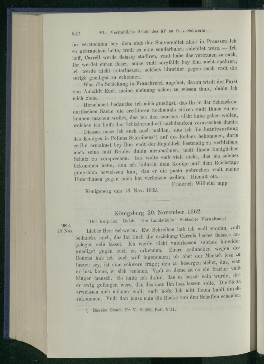 VI. Vertrauliche Briefe des Kurfürsten an Otto v. Schwerin 1661 - 1663.