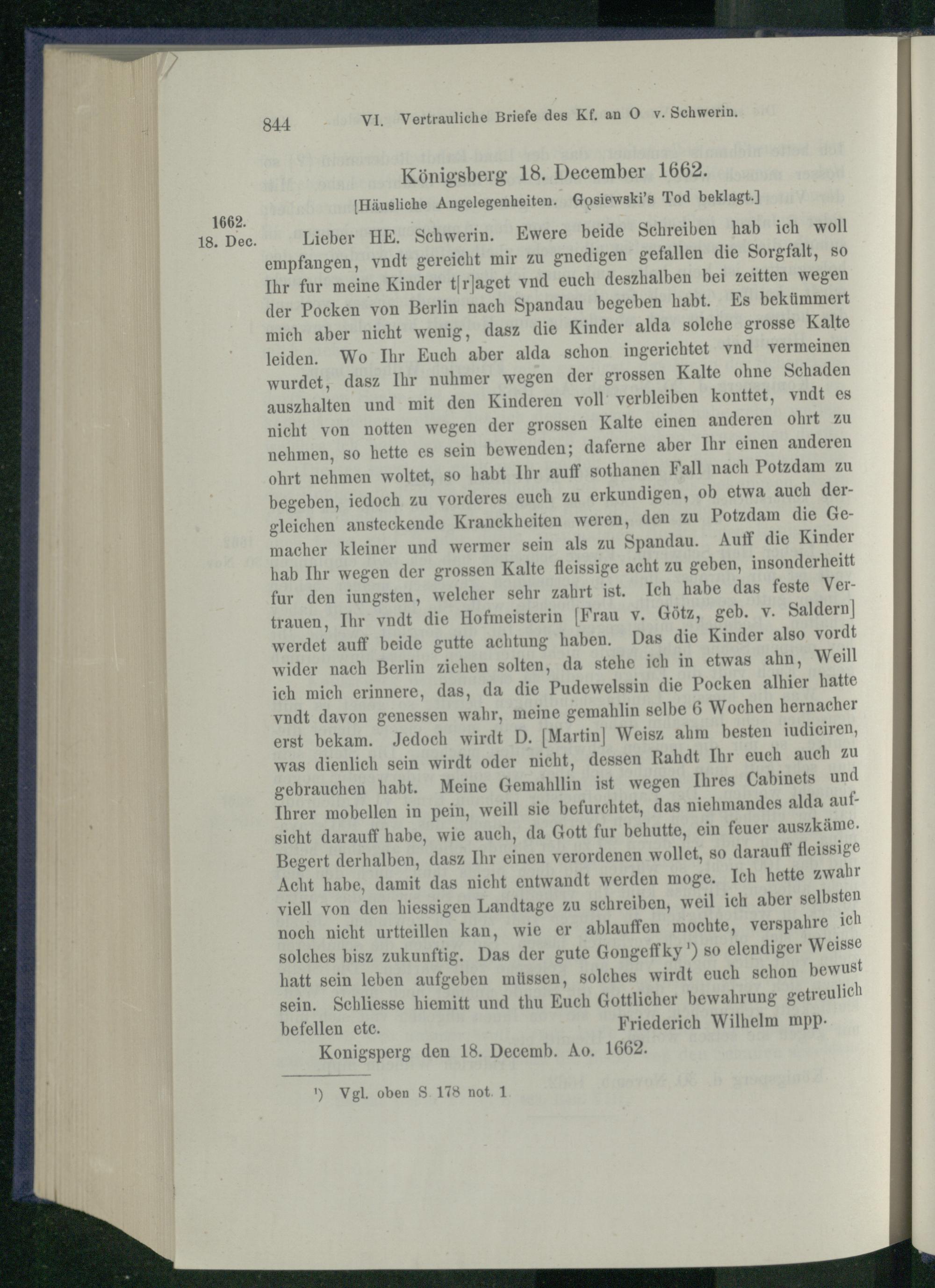 VI. Vertrauliche Briefe des Kurfürsten an Otto v. Schwerin 1661 - 1663.