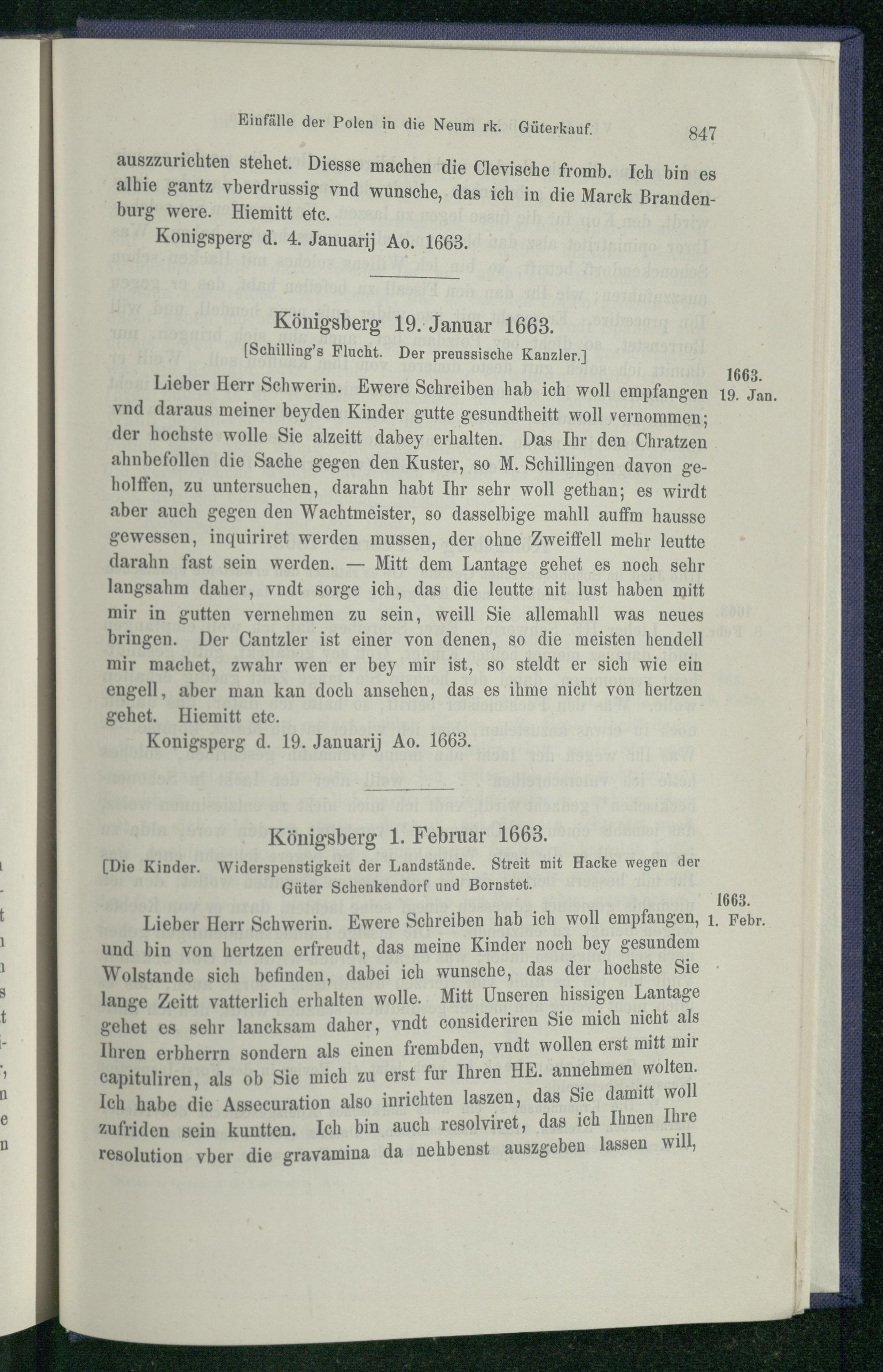 VI. Vertrauliche Briefe des Kurfürsten an Otto v. Schwerin 1661 - 1663.