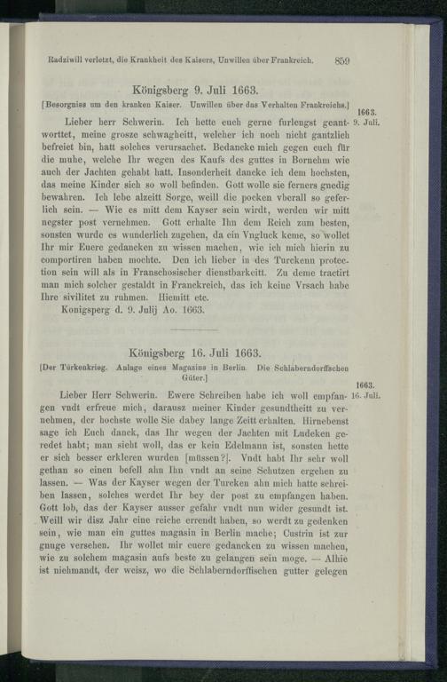 VI. Vertrauliche Briefe des Kurfürsten an Otto v. Schwerin 1661 - 1663.