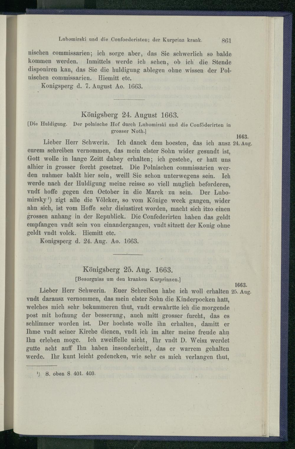 VI. Vertrauliche Briefe des Kurfürsten an Otto v. Schwerin 1661 - 1663.