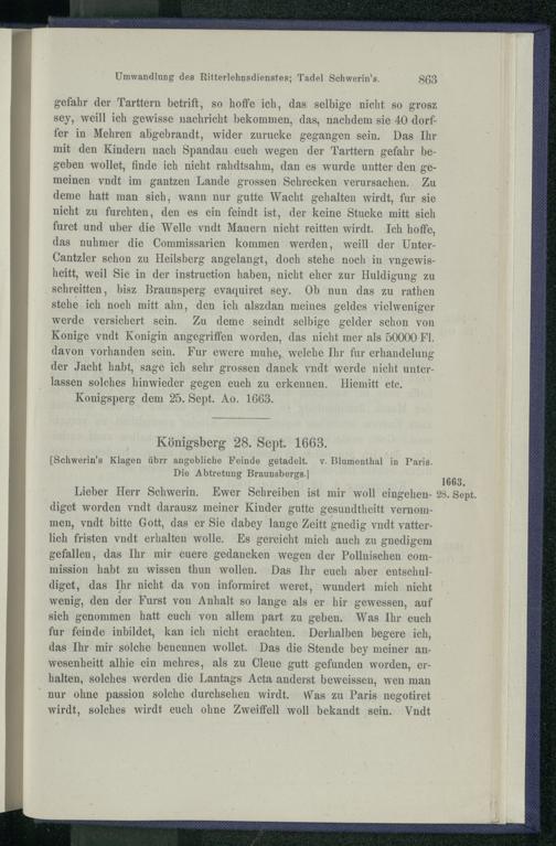 VI. Vertrauliche Briefe des Kurfürsten an Otto v. Schwerin 1661 - 1663.