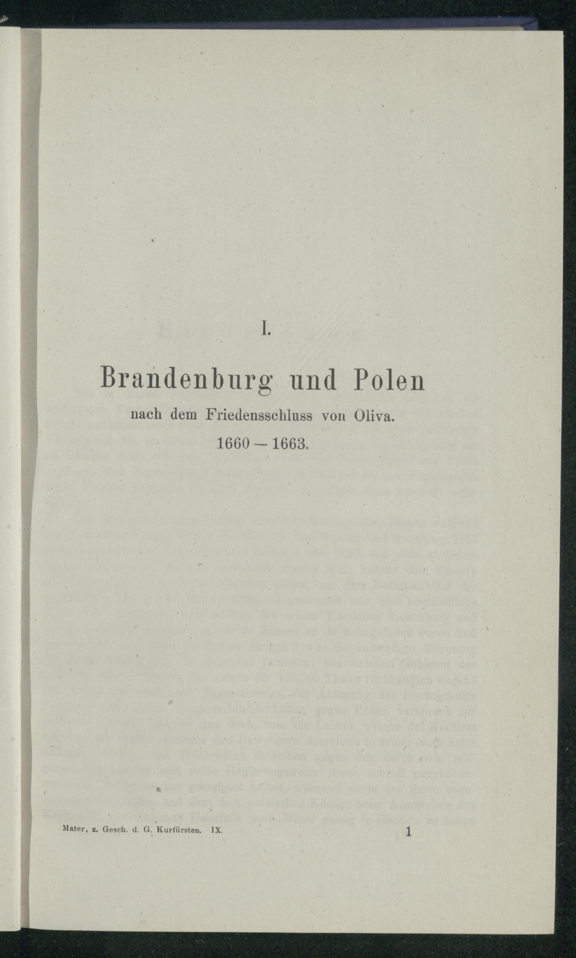 I. Brandenburg und Polen nach dem Friedensschluss von Oliva. 1660 - 1663.
