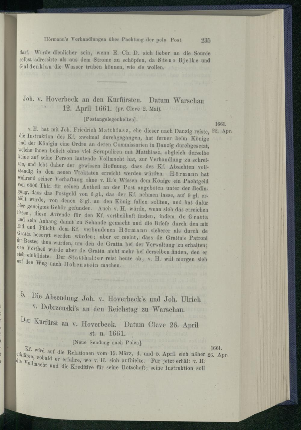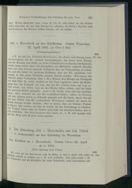 5. Die Absendung Joh. v. Hoverbeck's und Joh. Ulrich v. Dobrzenski's an den Reichstag...