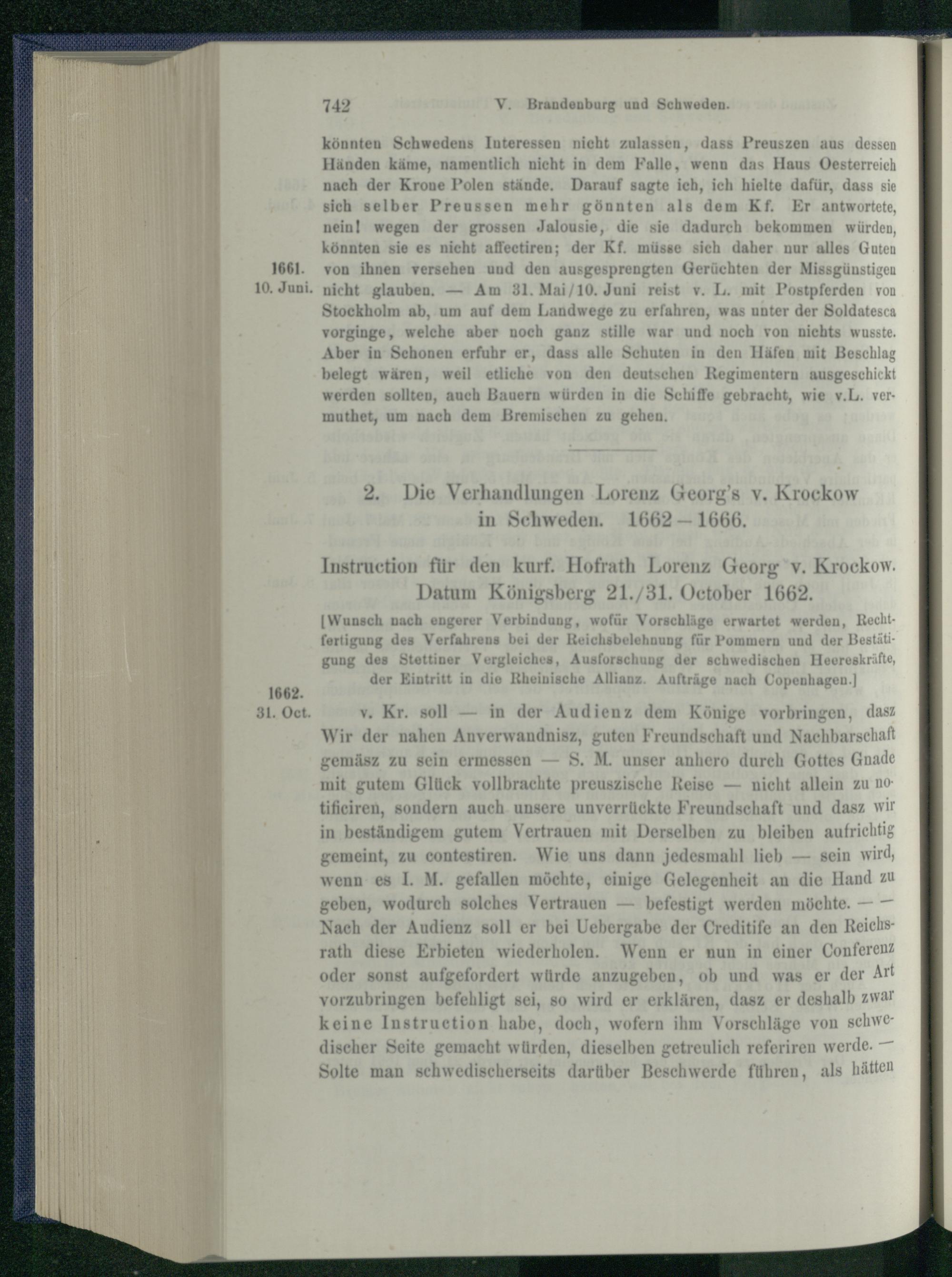 2. Die Verhandlungen Lorenz Georg's v. Krockow in Schweden. 1662 - 1666.