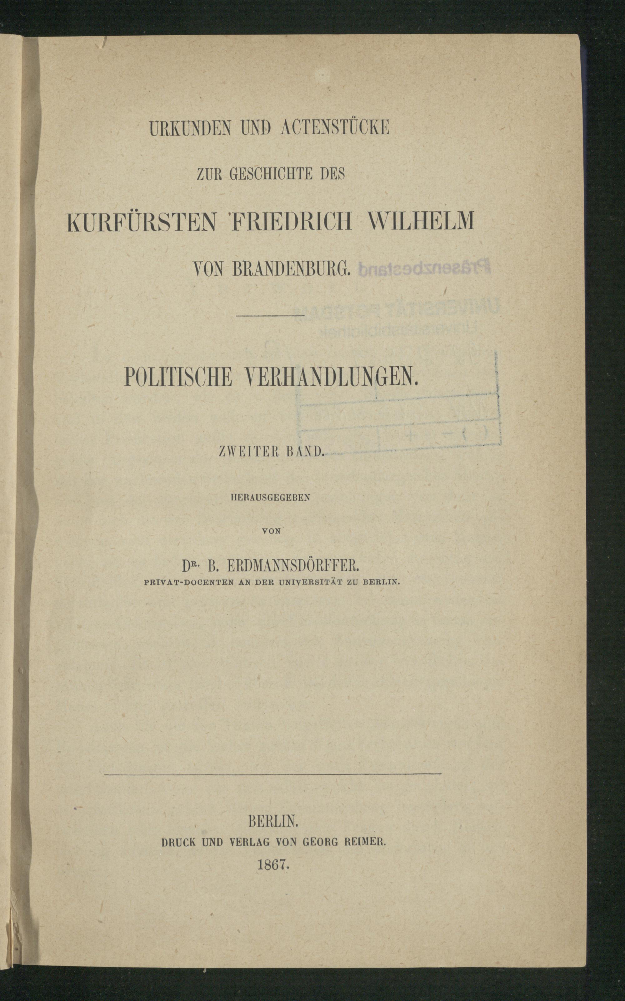 Bd. 4 (1867) Politische Verhandlungen ; Bd. 2 / hrsg. von B. Erdmannsdörffer
