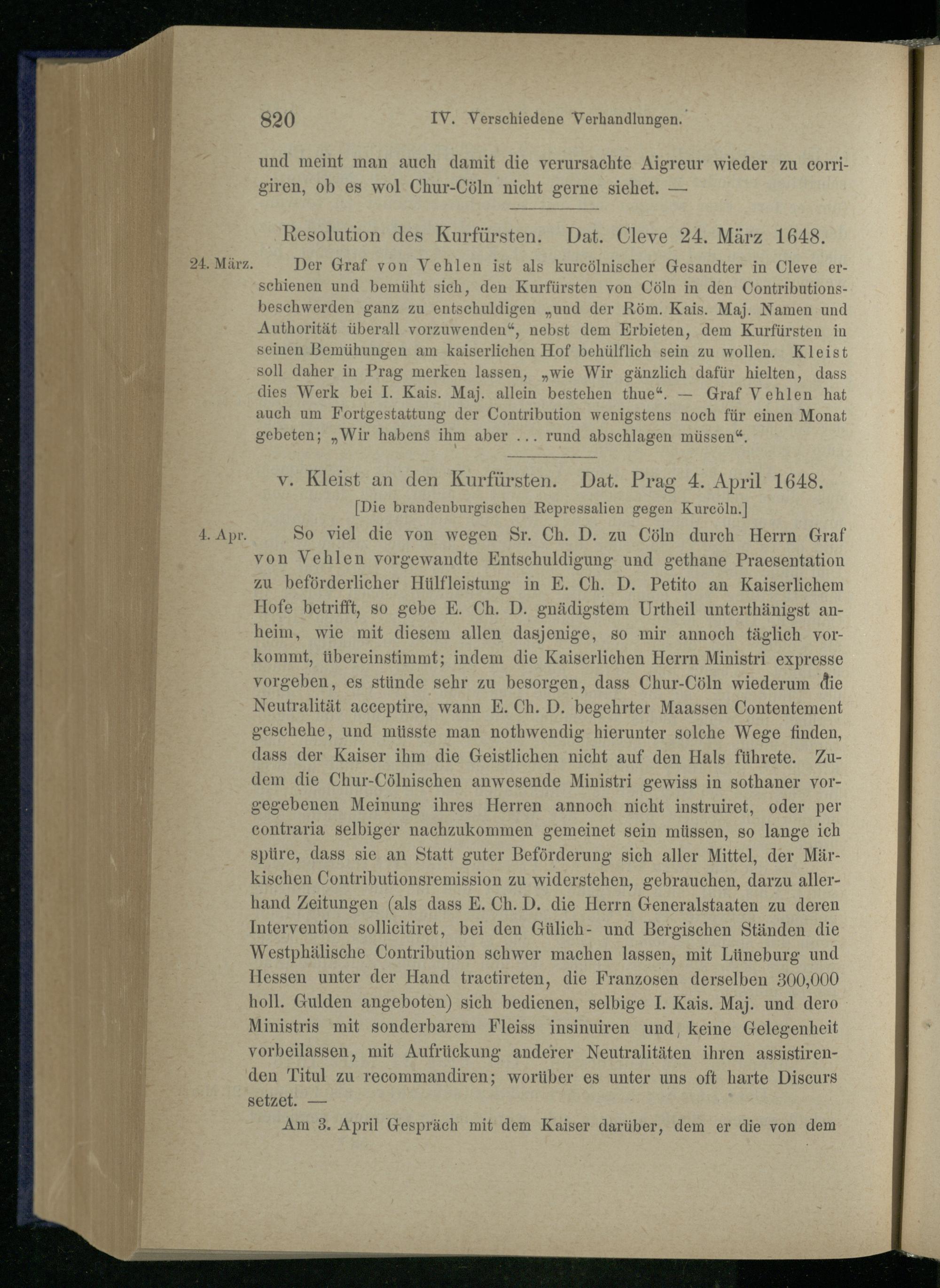 IV. Verschiedene Verhandlungen 1645-1648.