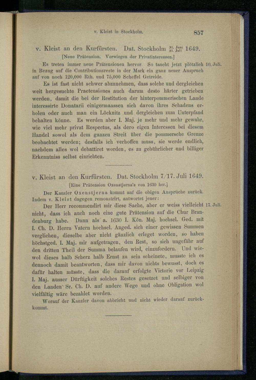 1. Gesandtschaft v. Kleist's nach Schweden 1649-1651.