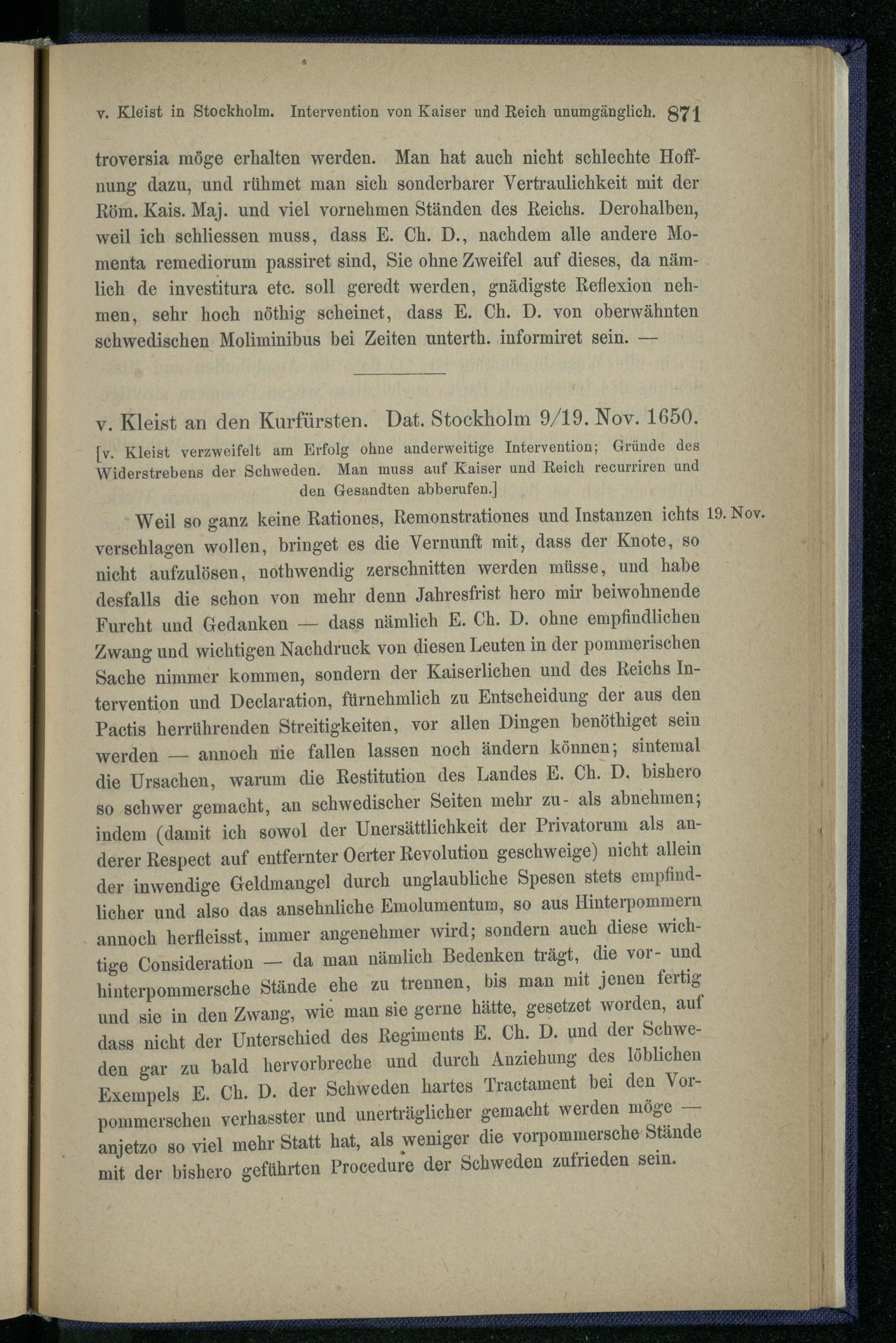 1. Gesandtschaft v. Kleist's nach Schweden 1649-1651.