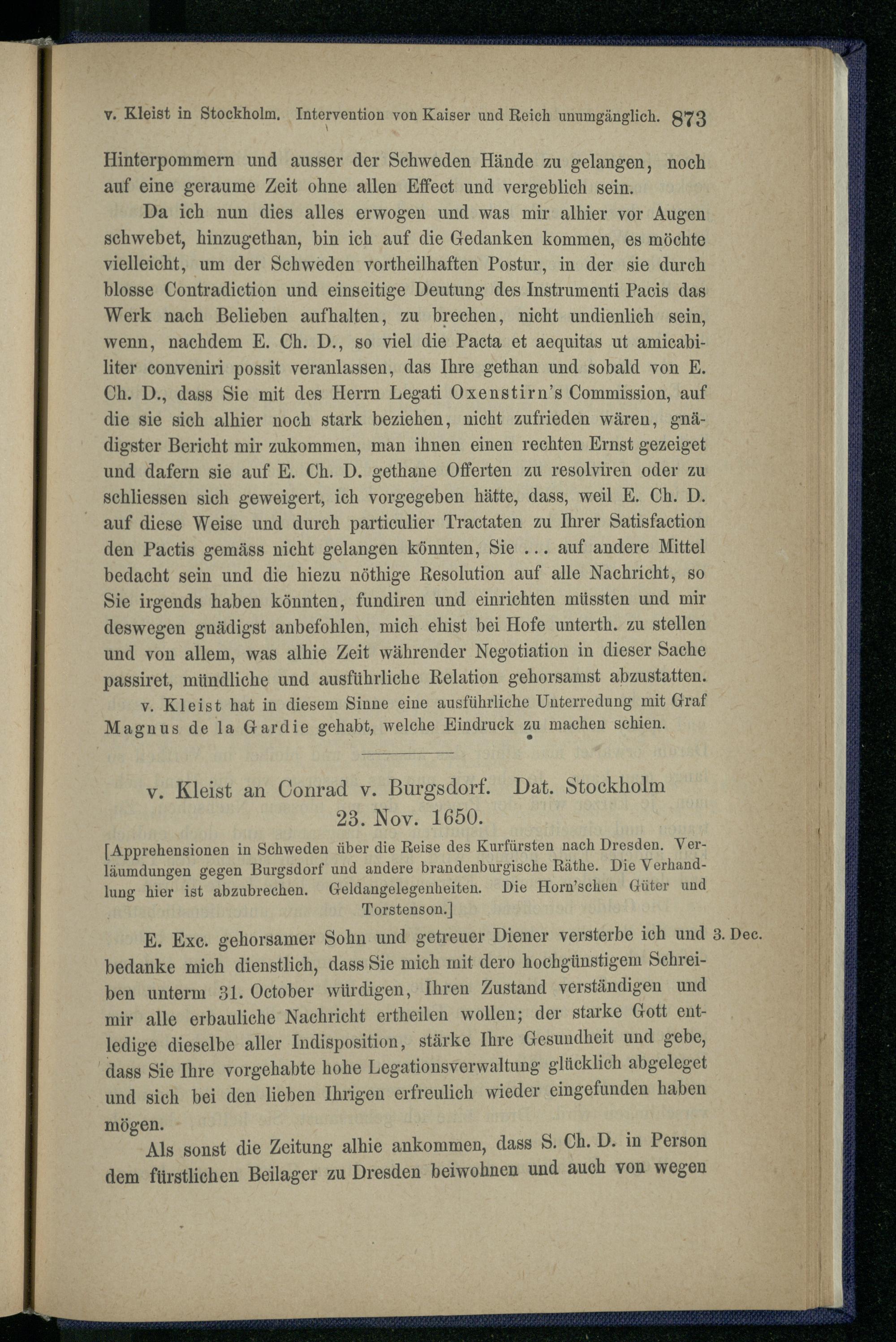 1. Gesandtschaft v. Kleist's nach Schweden 1649-1651.
