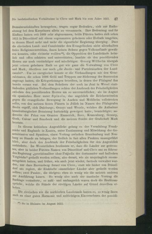 Die landständischen Verhältnisse in Cleve und Mark bis zum Jahre 1641.