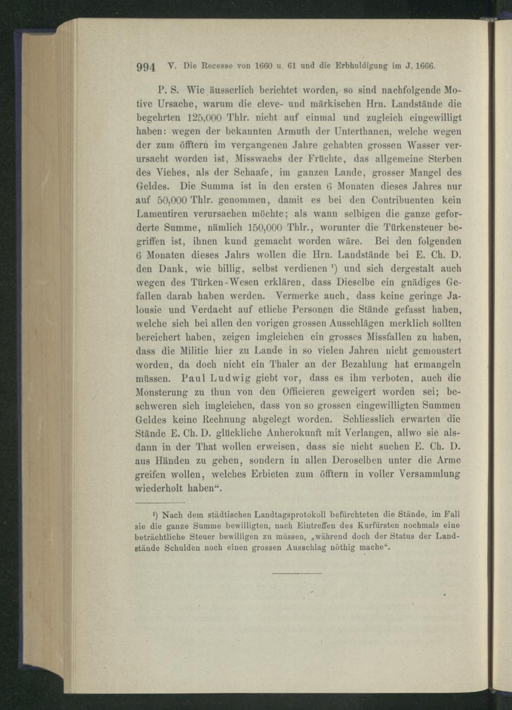 V. Die Recesse von 1660 und 1661 und die Erbhuldigung im Jahre 1666.