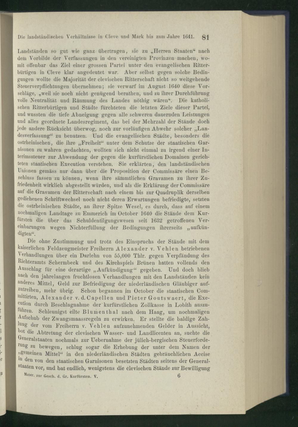 Die landständischen Verhältnisse in Cleve und Mark bis zum Jahre 1641.